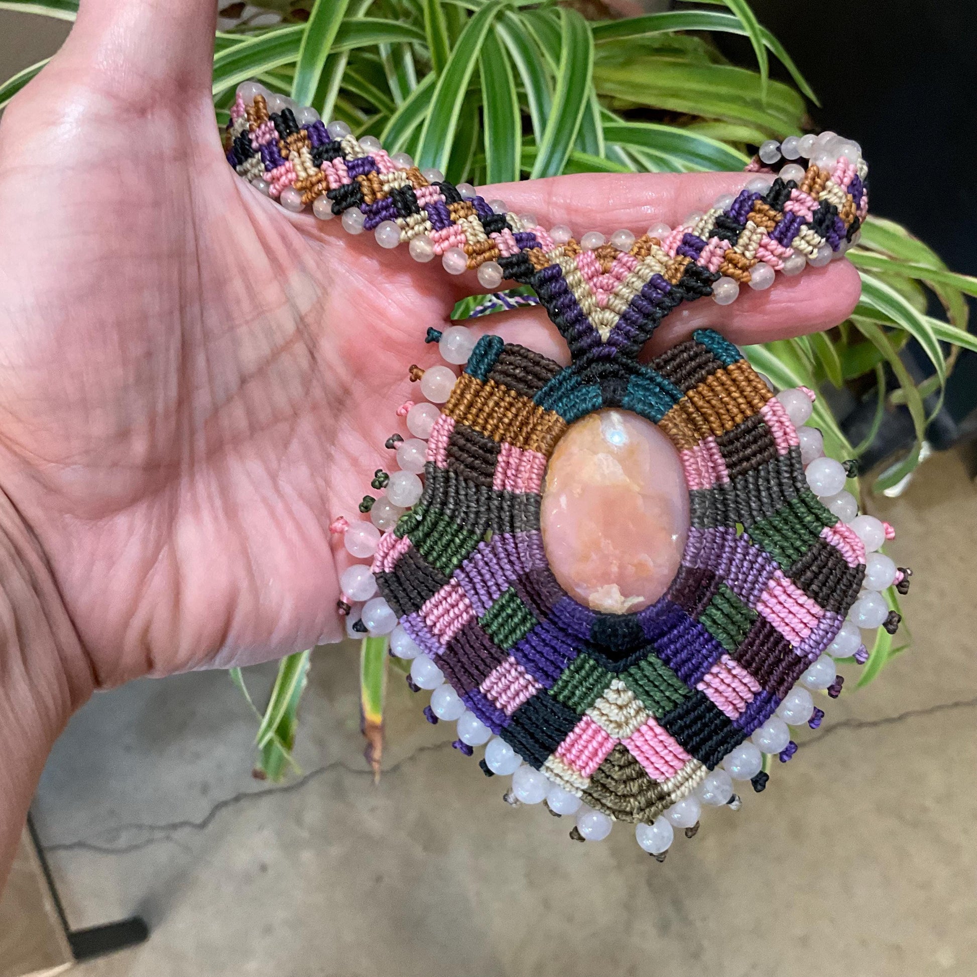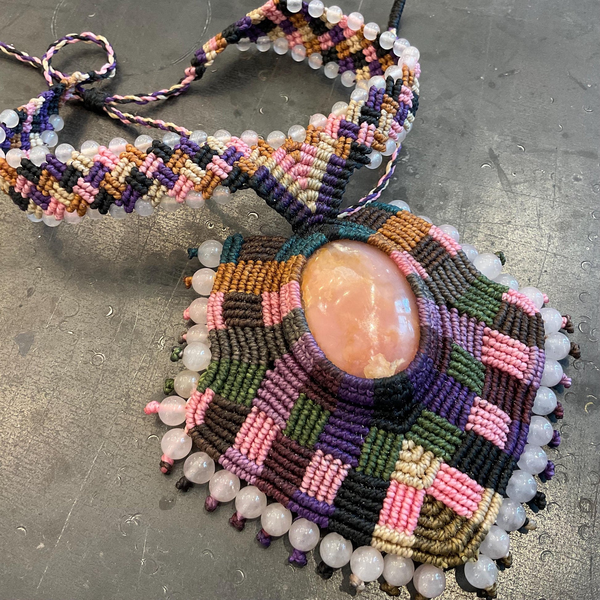 Handmade macrame necklace and rose quartz pink Artisan Choker
