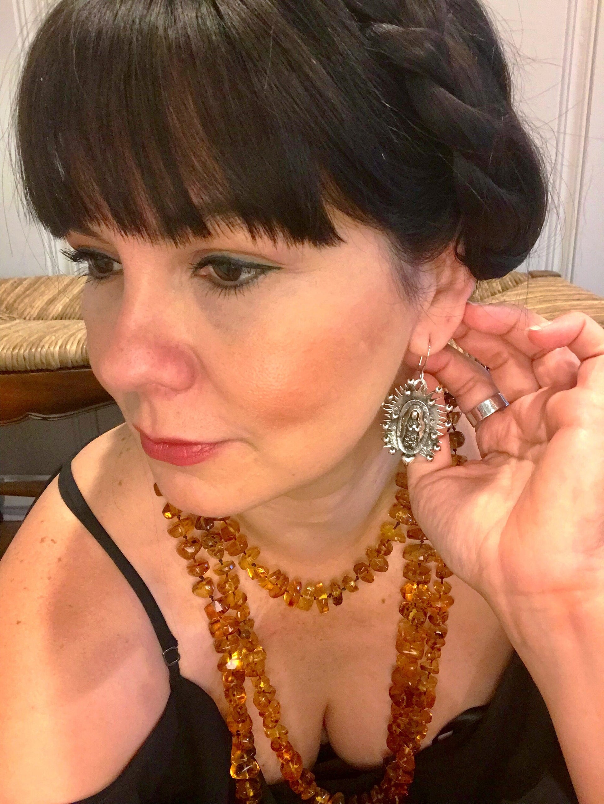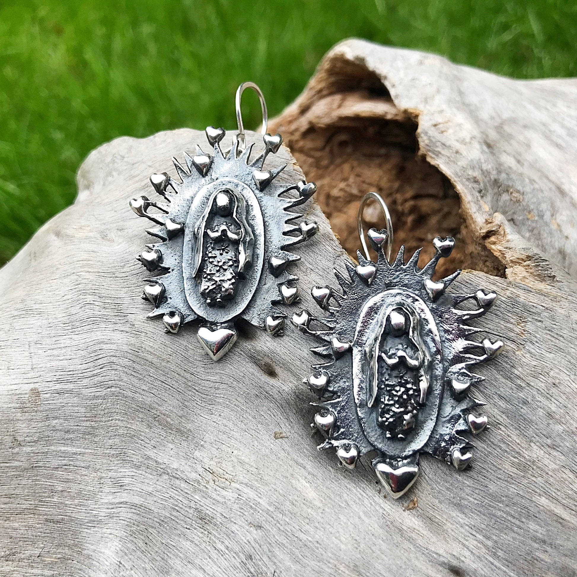Handmade Sterling Silver Madonna virgen Mary Guadalupe dangle earrings