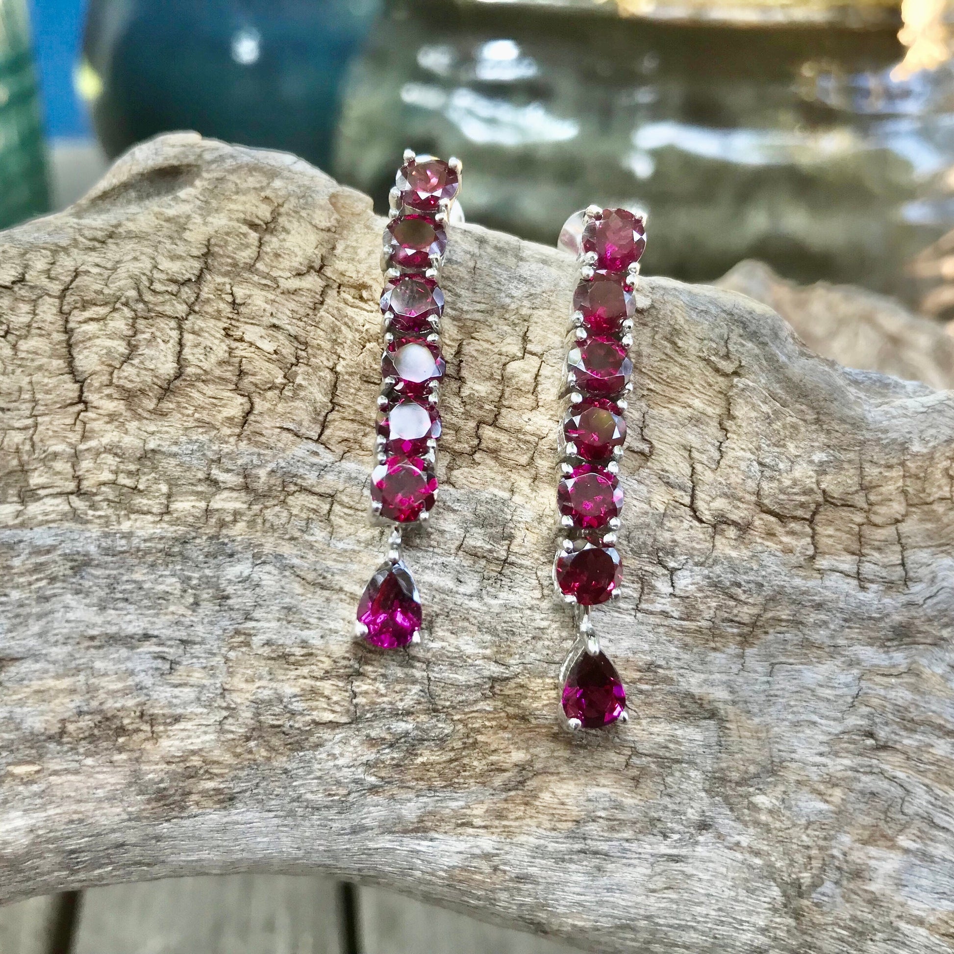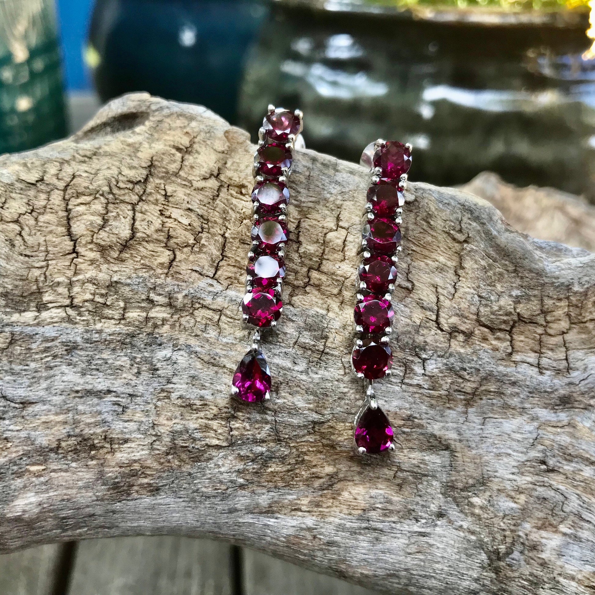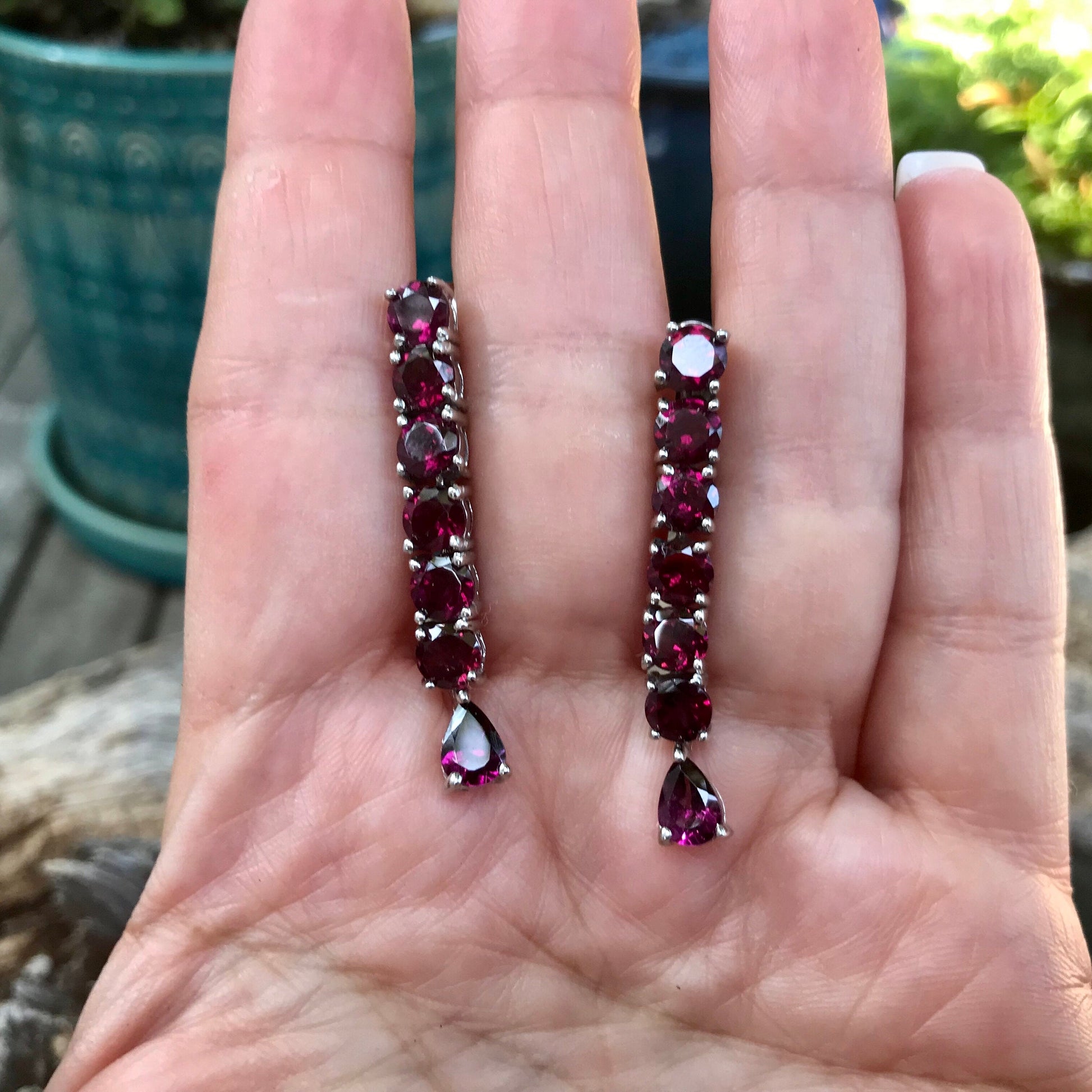Handmade Sterling Silver Rhodolite Garnet Long earrings