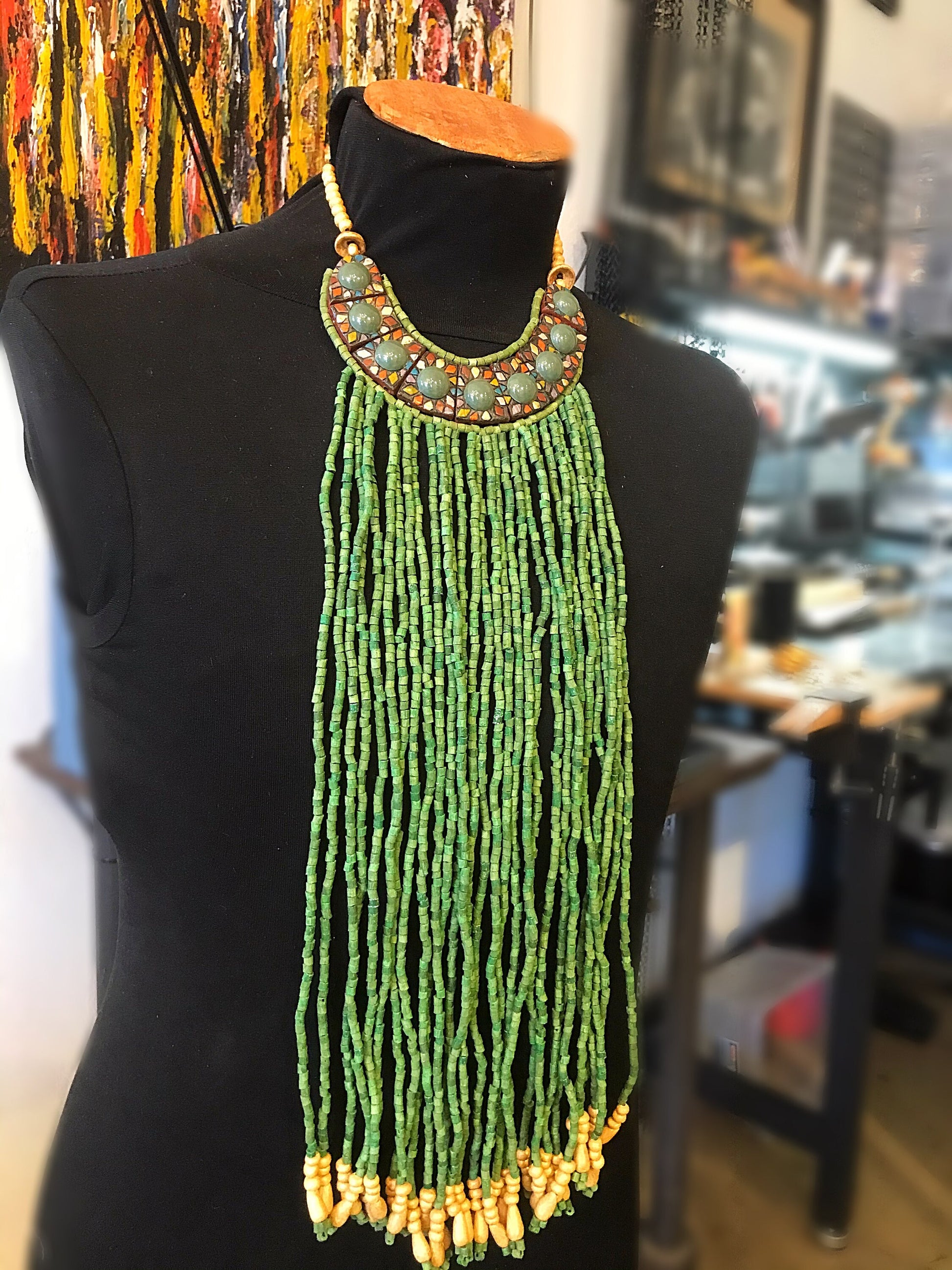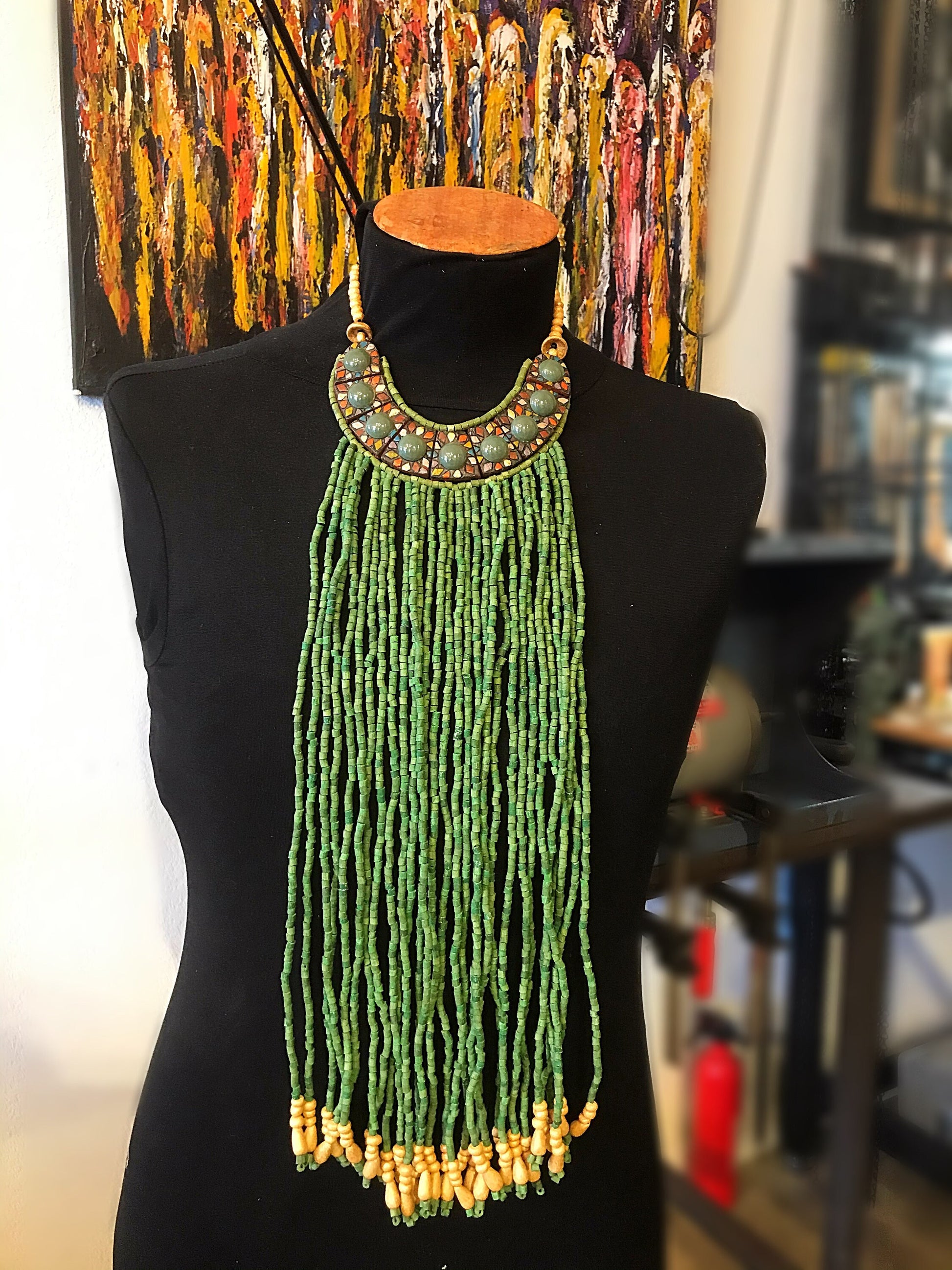 Jade Ceramic Runway Statement Green Artisan Studio Long Ethnic Necklace