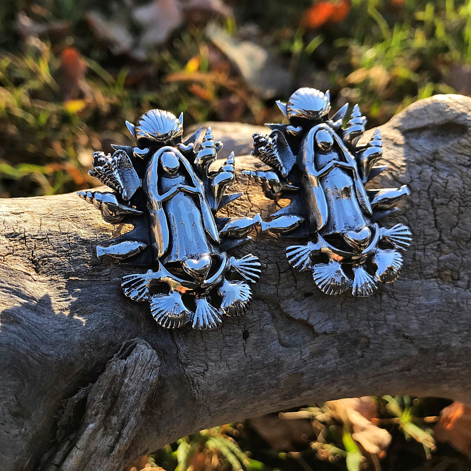 Sterling sea shell Silver Madonna virgen María Guadalupe stud earrings