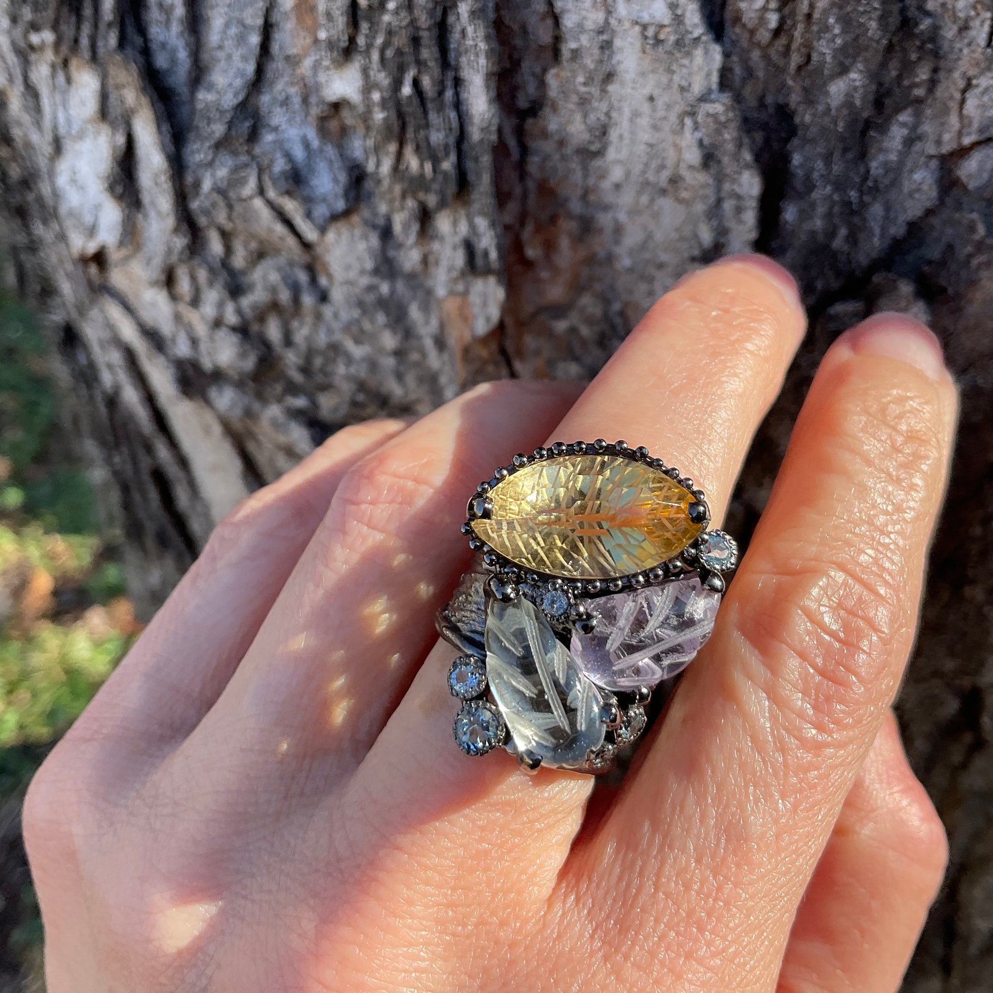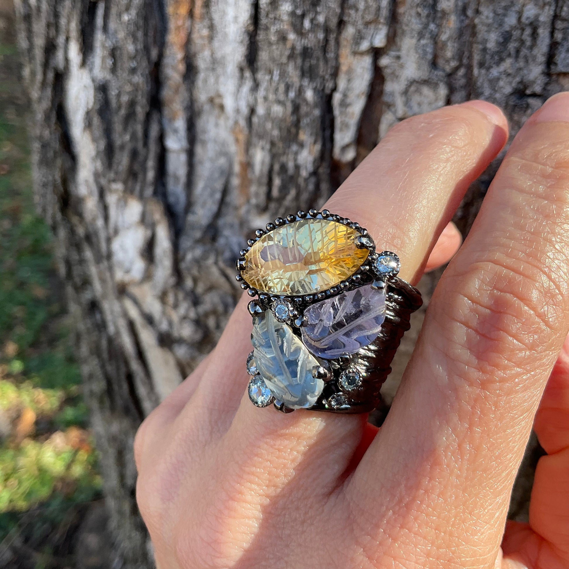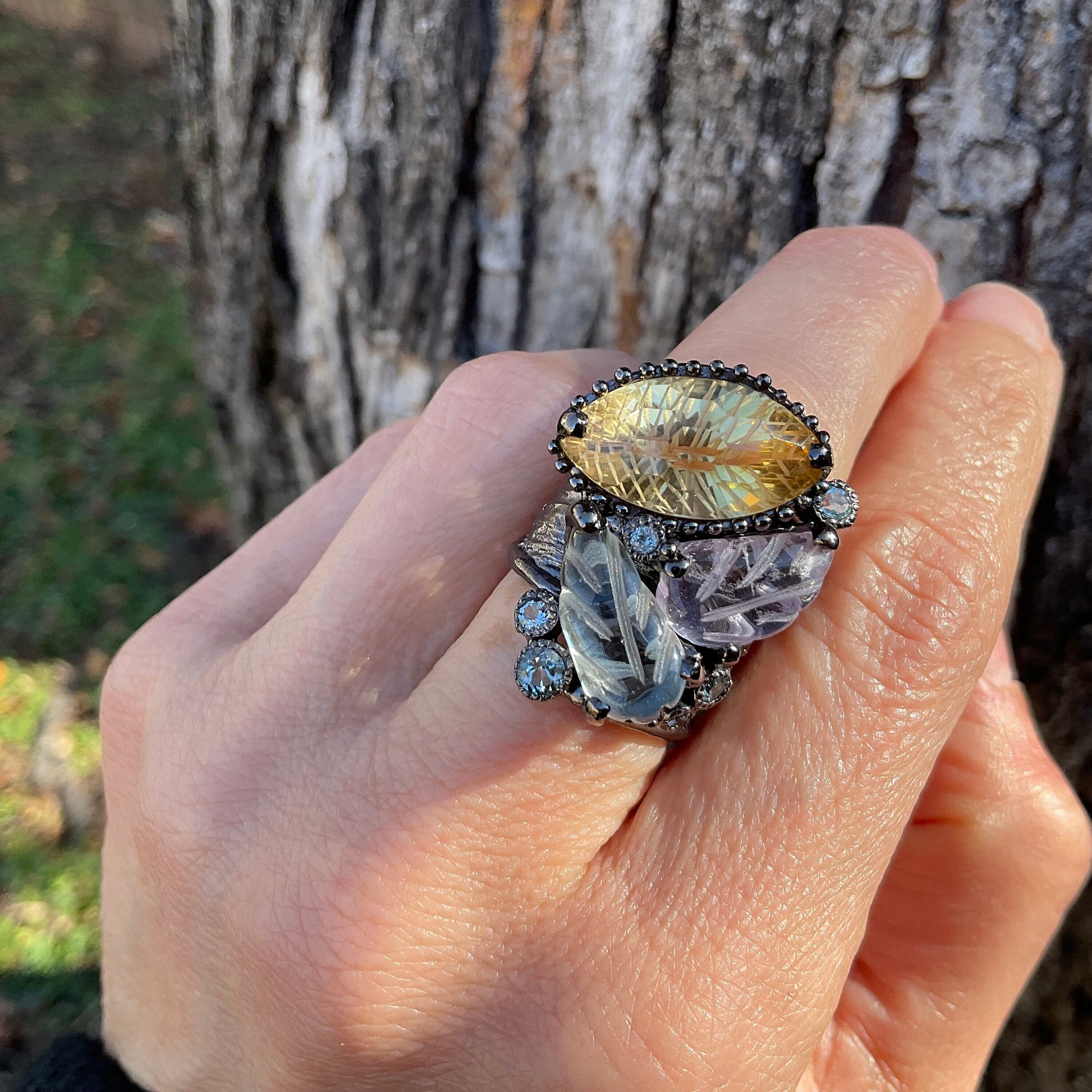sterling Silver amethyst topaz citrine carved band Ring 7.5 RESERVED Do NOT Buy
