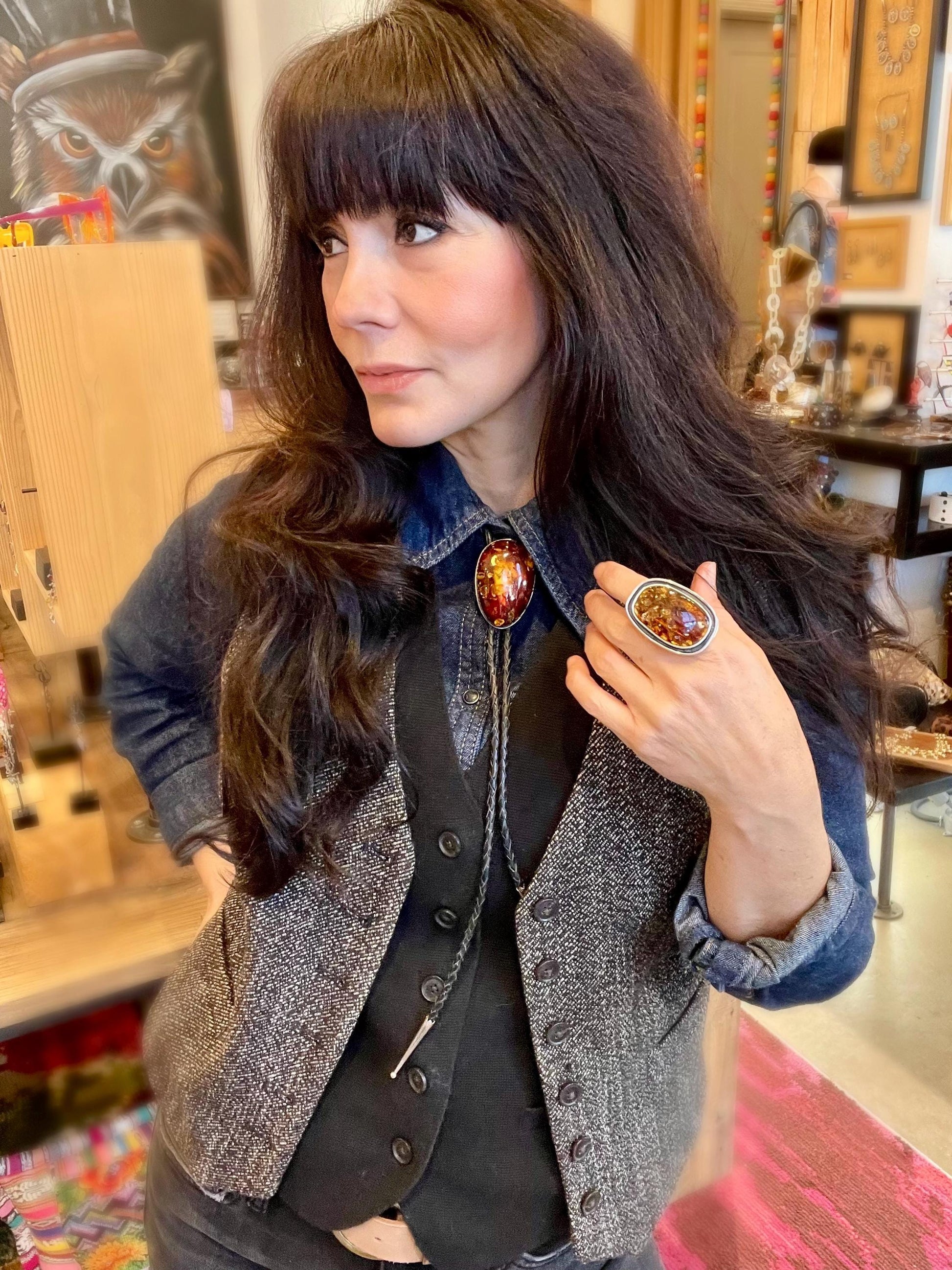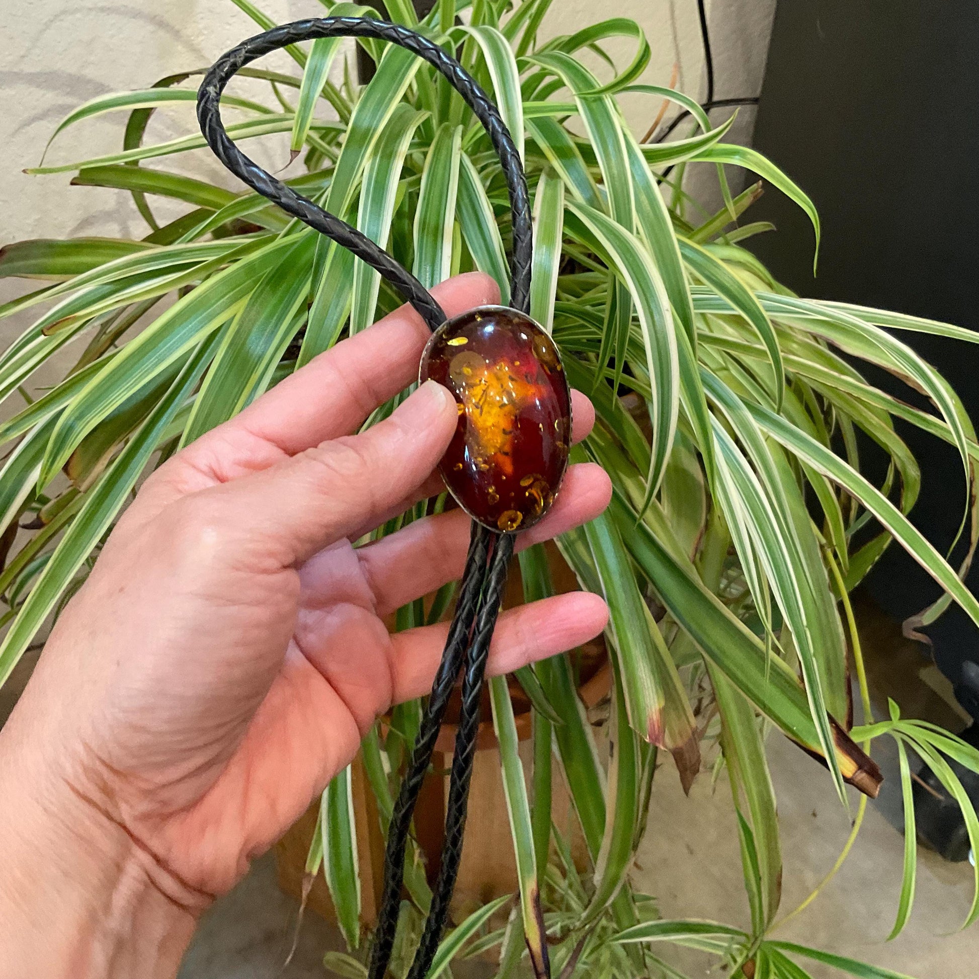 Sterling silver black fire western bolo tie necklace