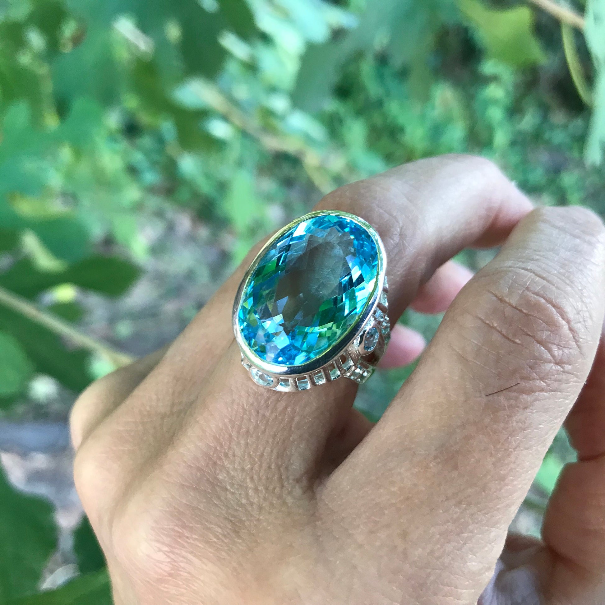 Sterling Silver blue topaz modernist ring 7.5