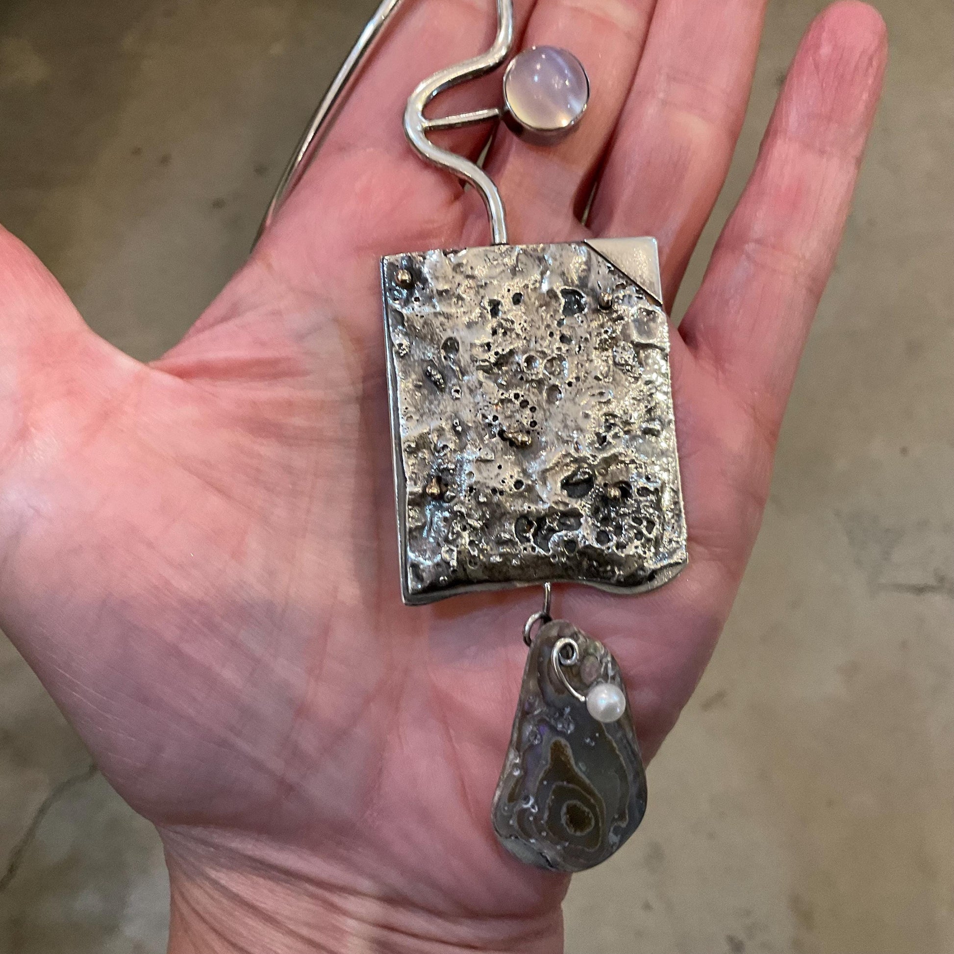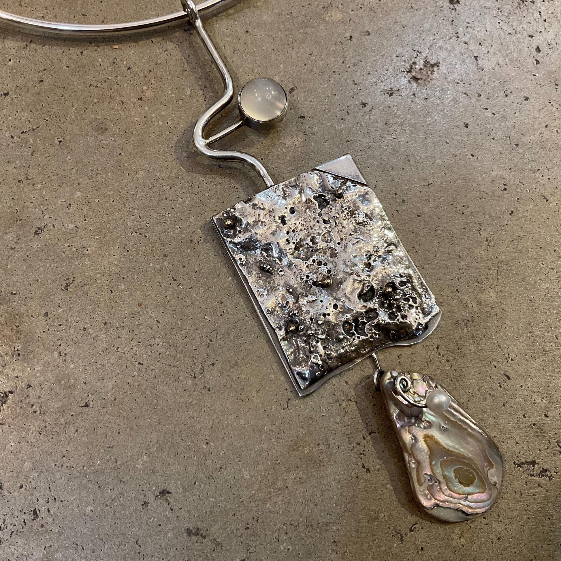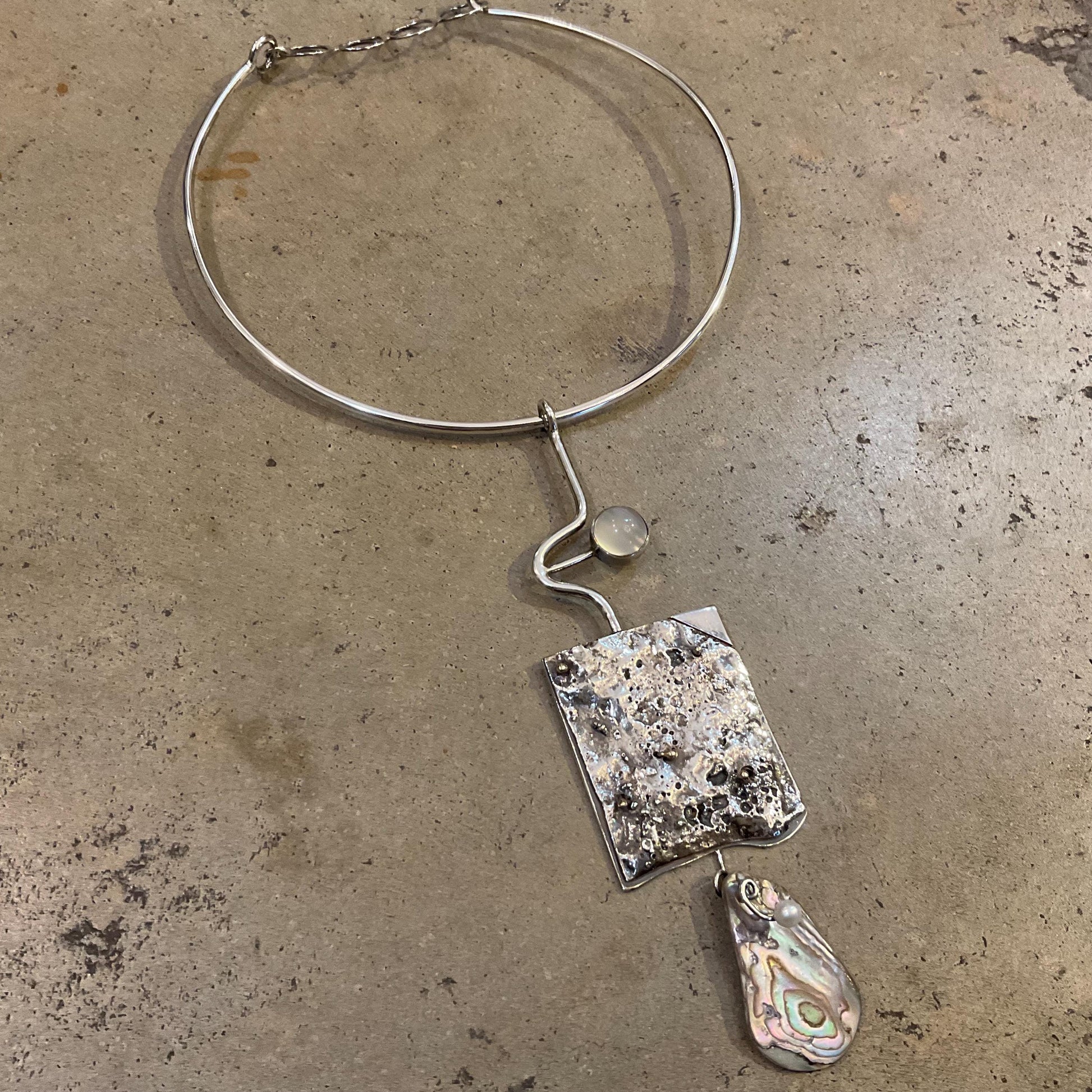 Sterling silver cat eye brutalist abstract Statement Necklace choker