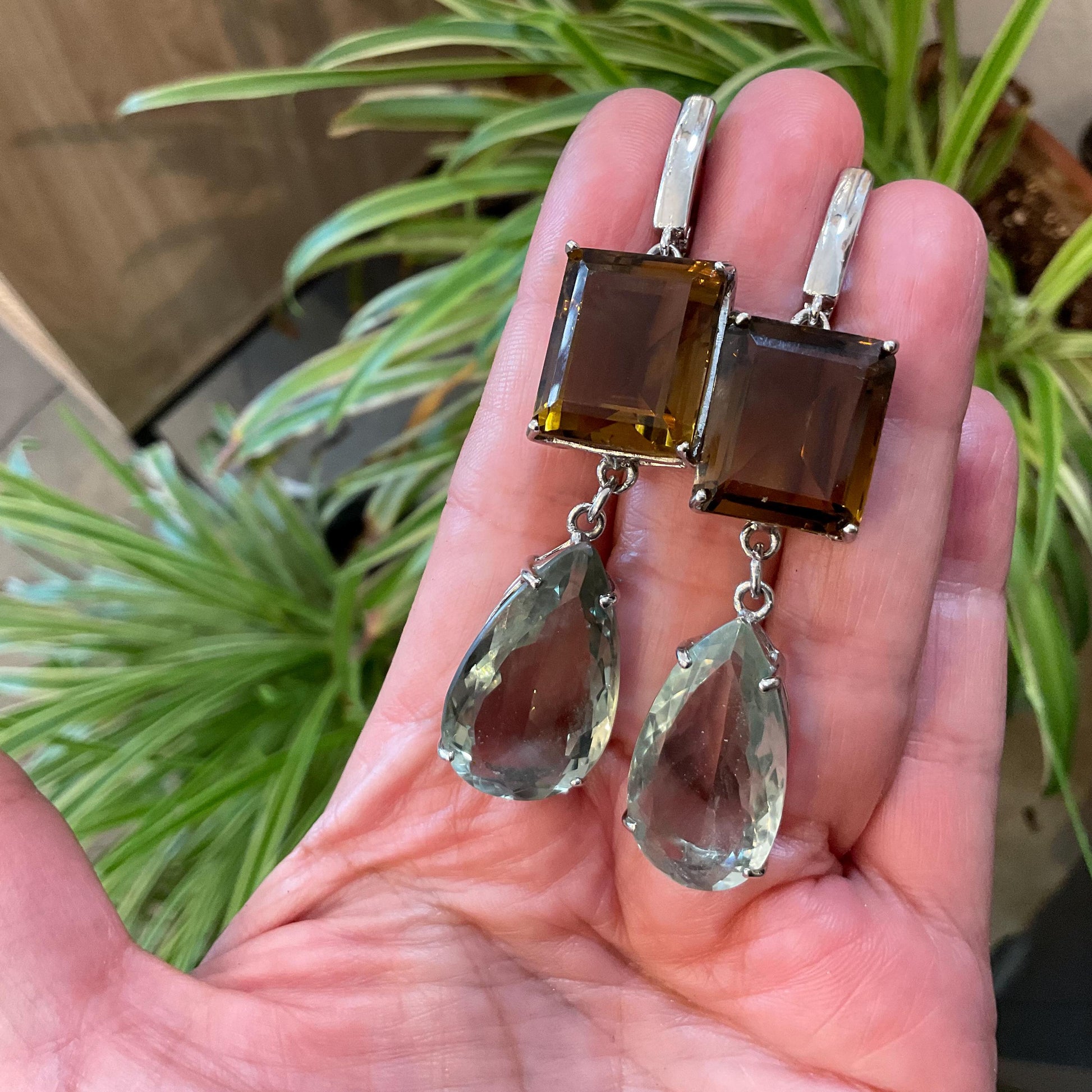 Sterling silver citrine emerald cut green pear shape amethyst statement earrings