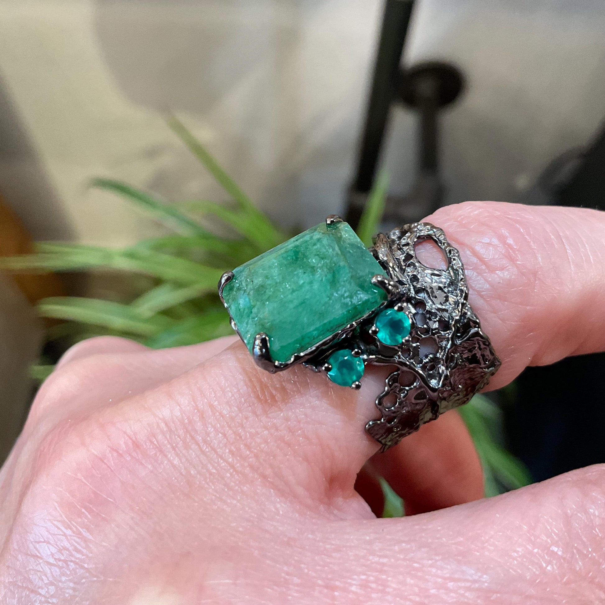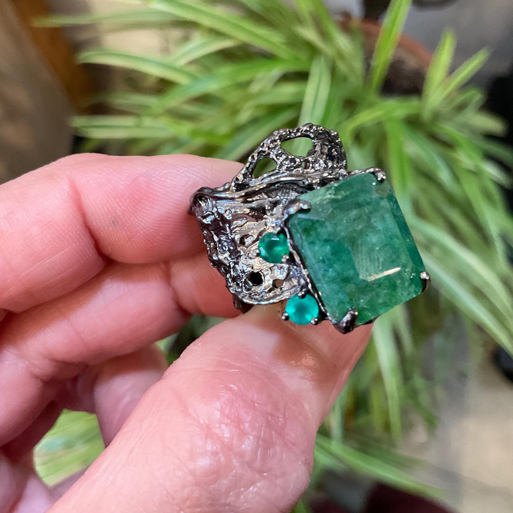 Sterling silver emerald cut green beryl band green onyx Etnika ring 6.5
