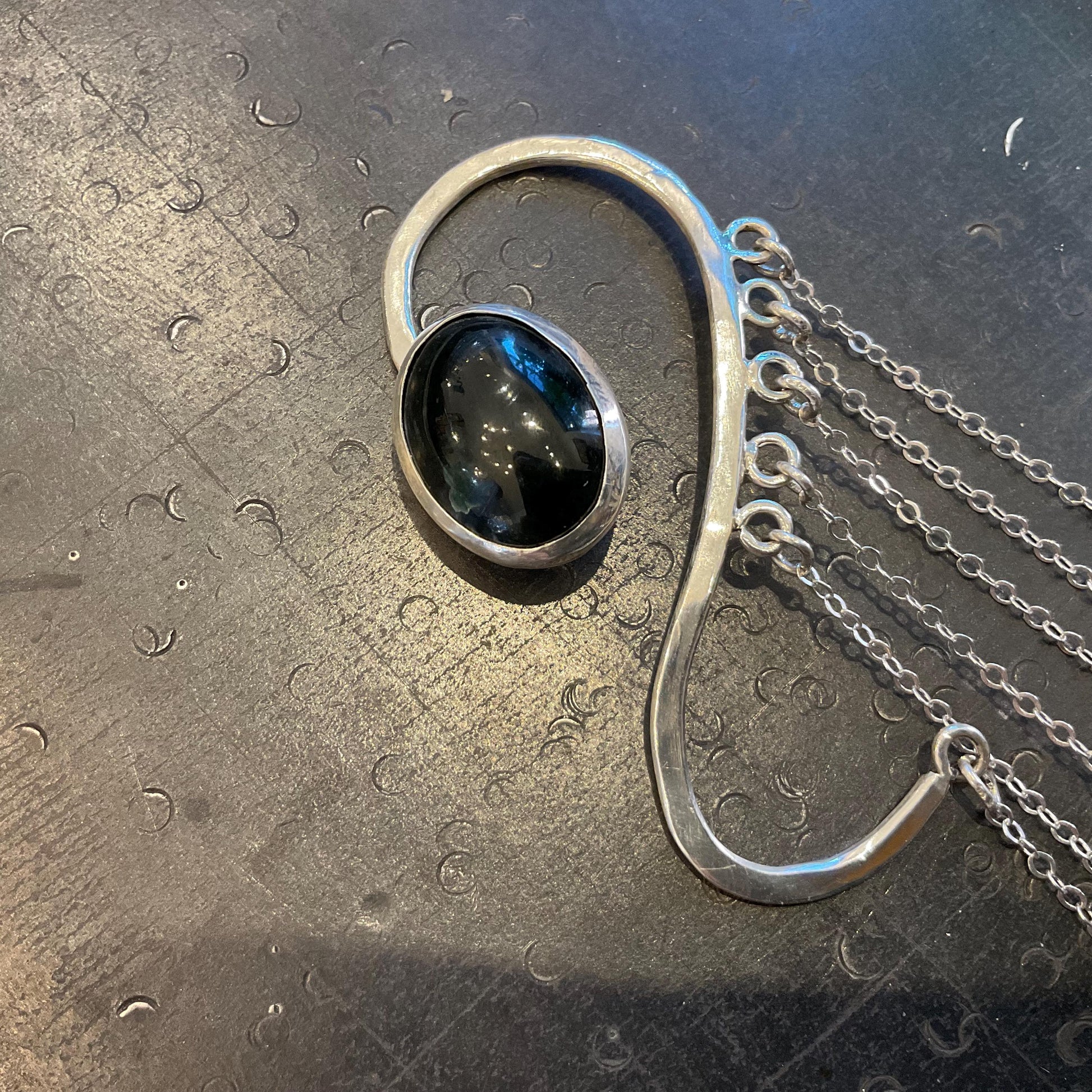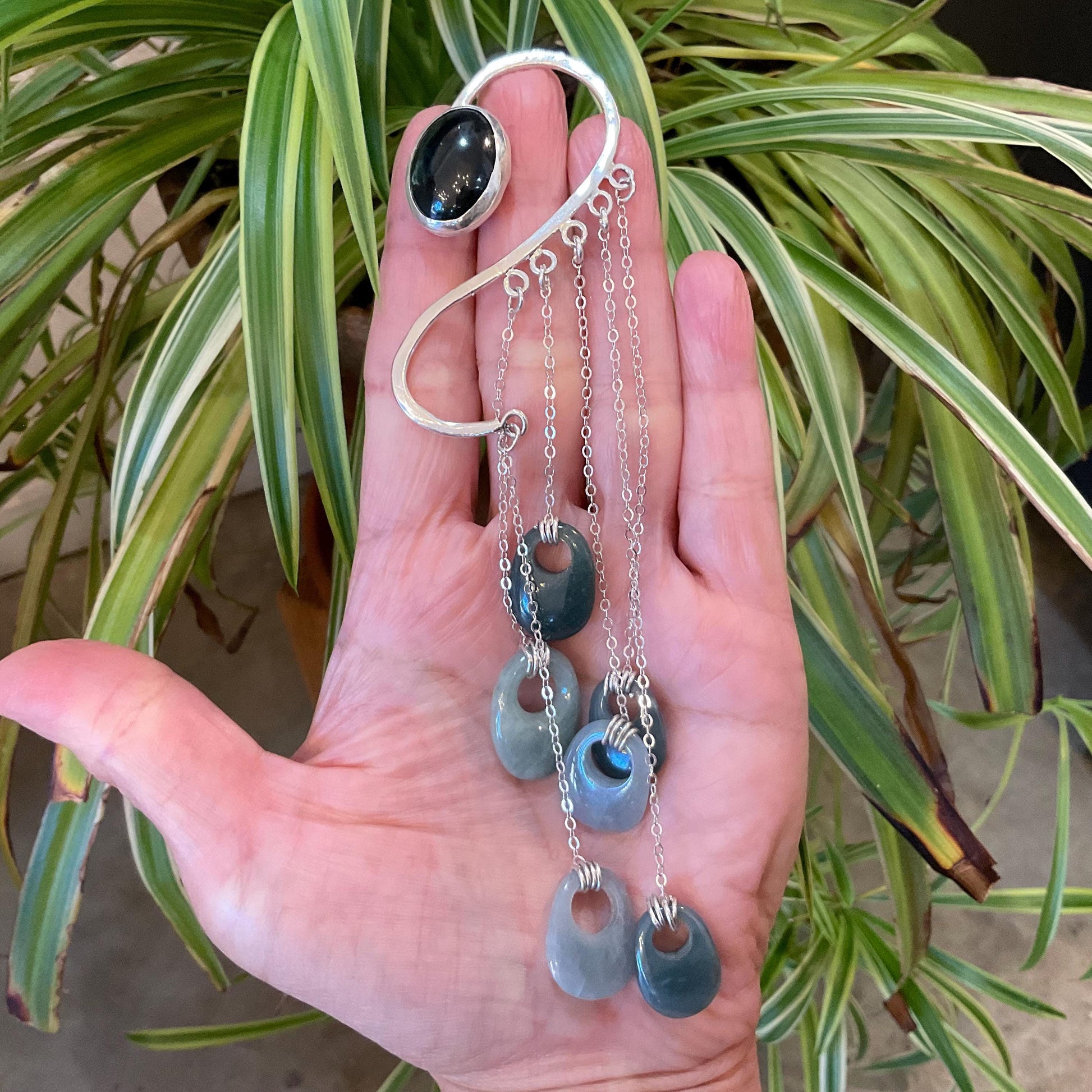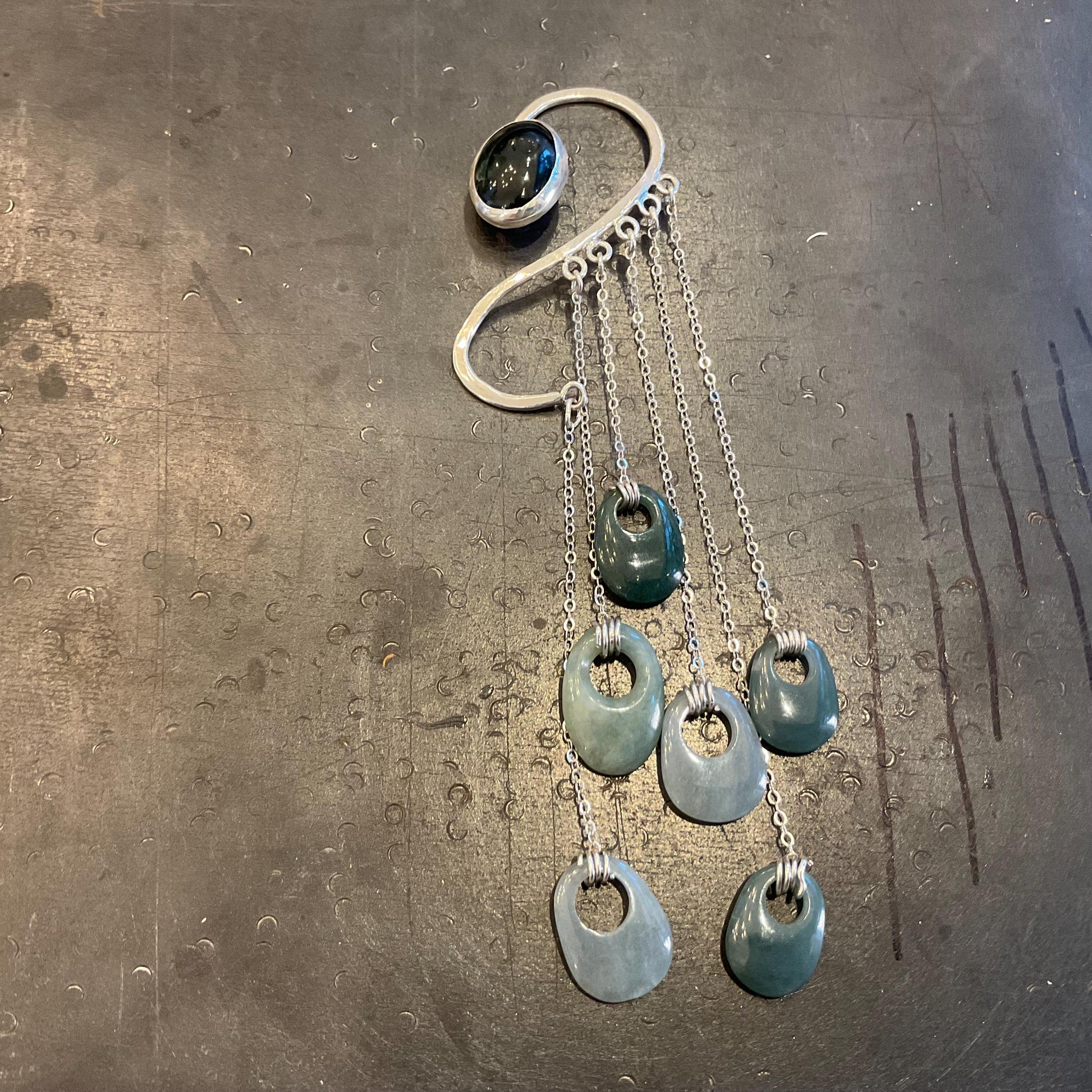 Sterling Silver Guatemalan black blue and green jade ear cuff