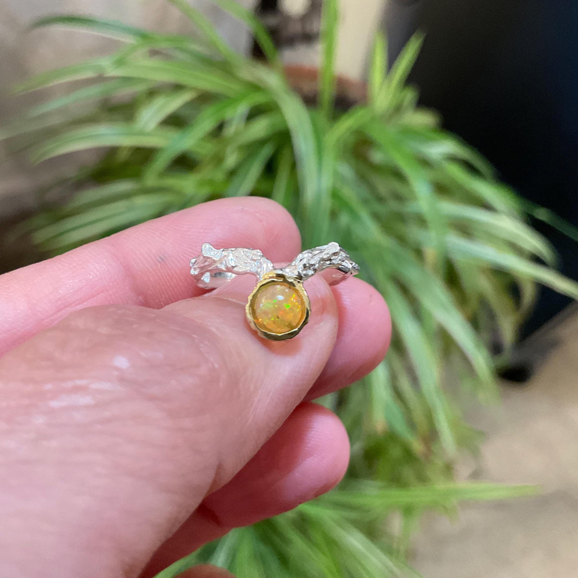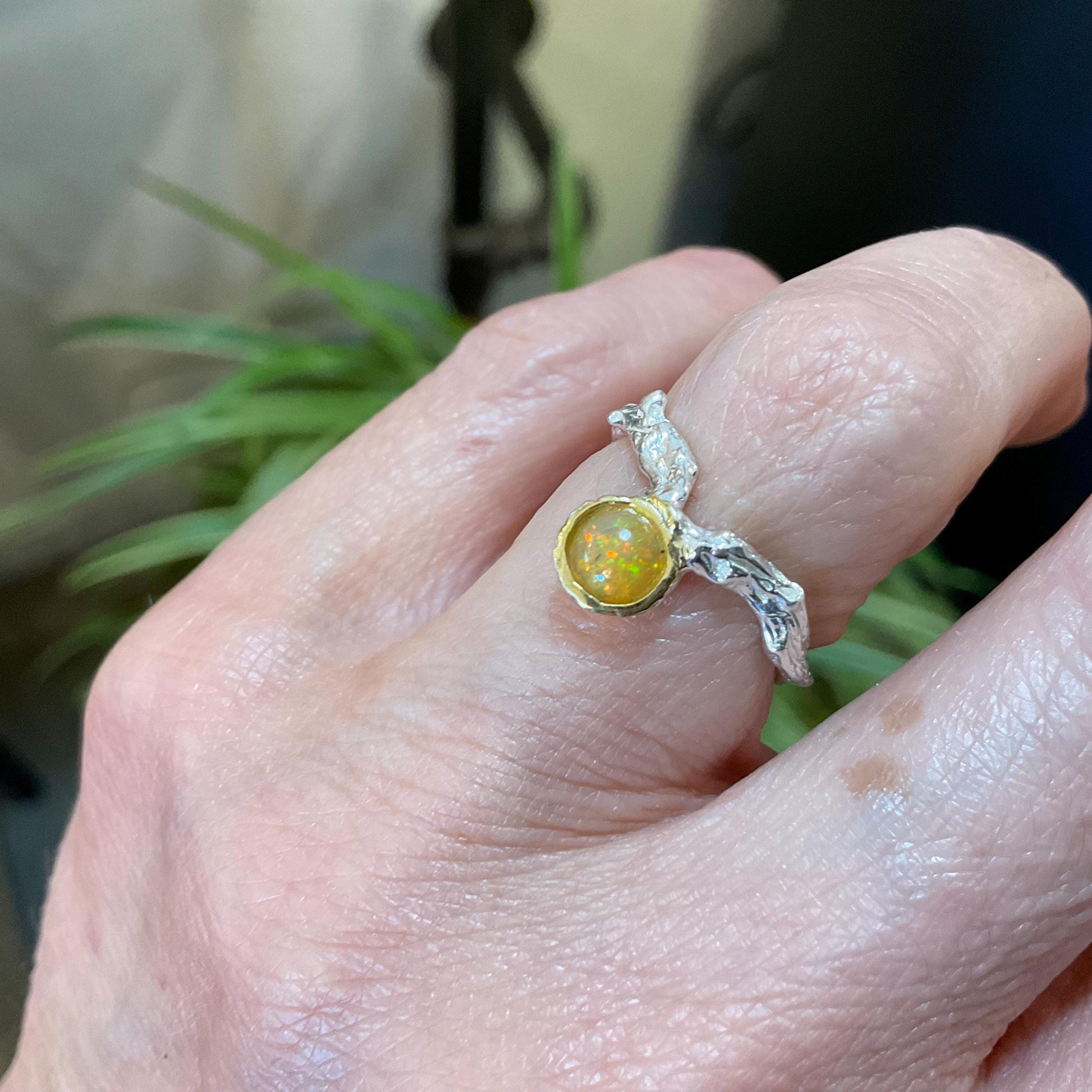 Sterling Silver Handmade rainbow orange Opal Artisan dainty twig ring 5.5