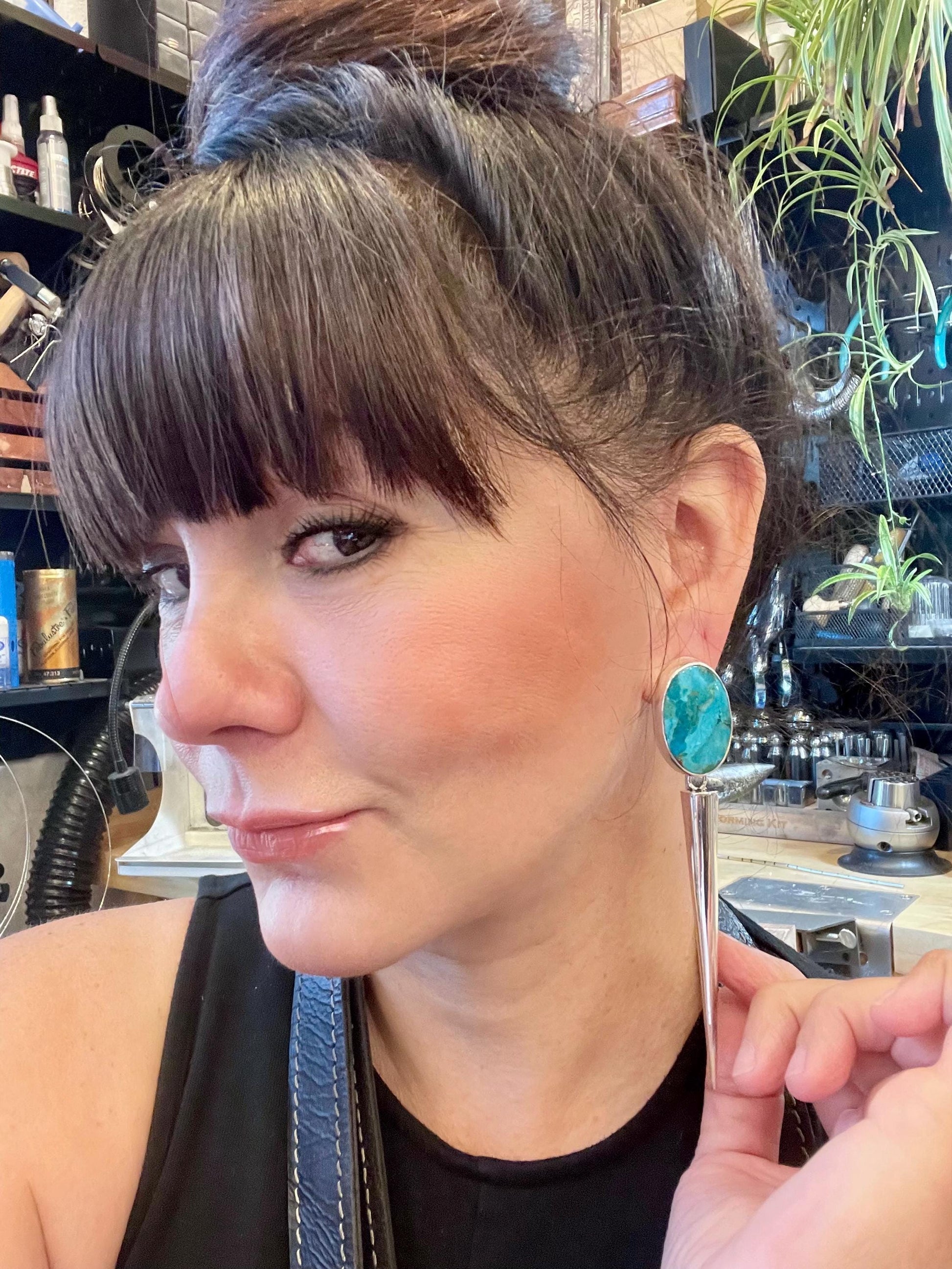Sterling Silver large kingman turquoise long dangle spike earrings 4.5” long