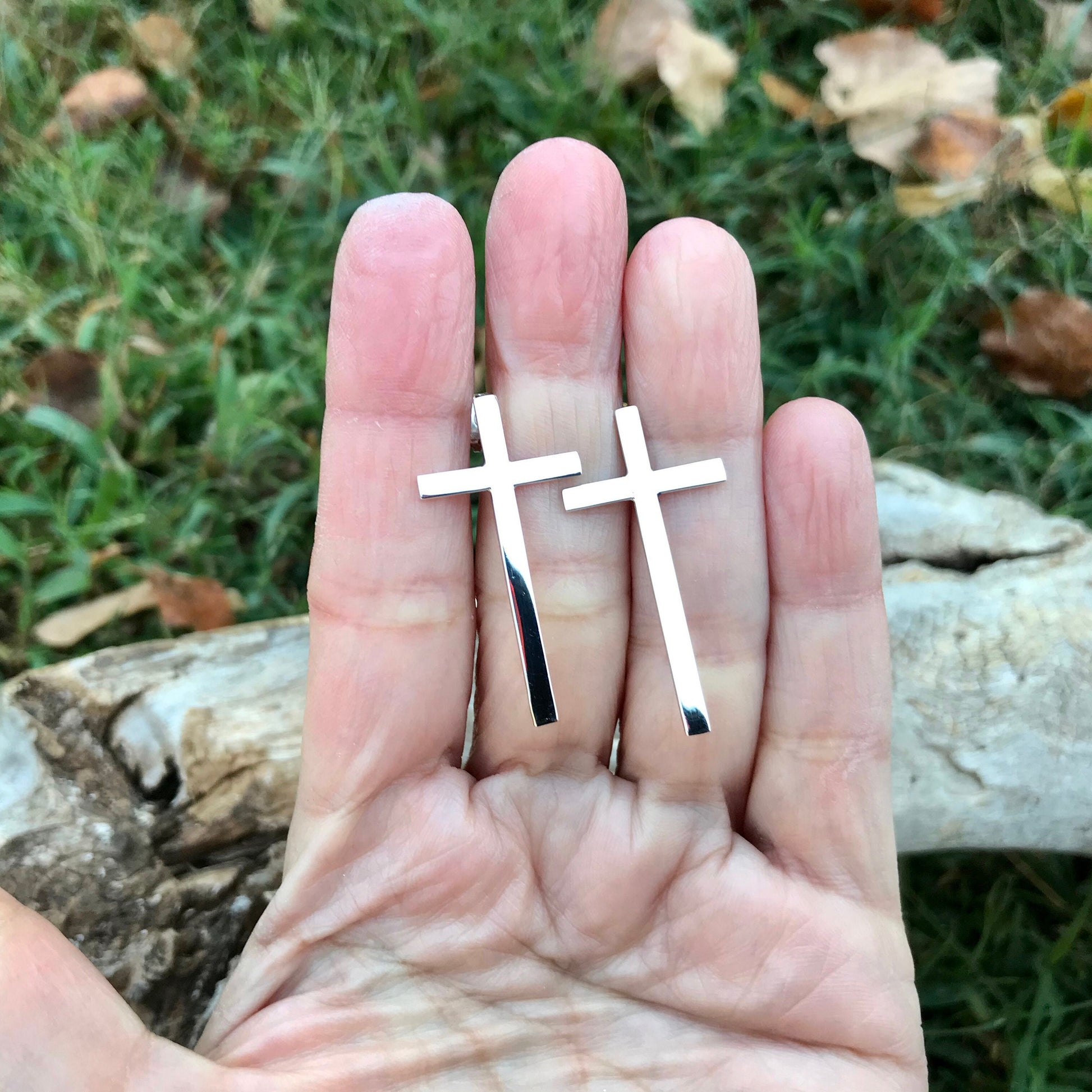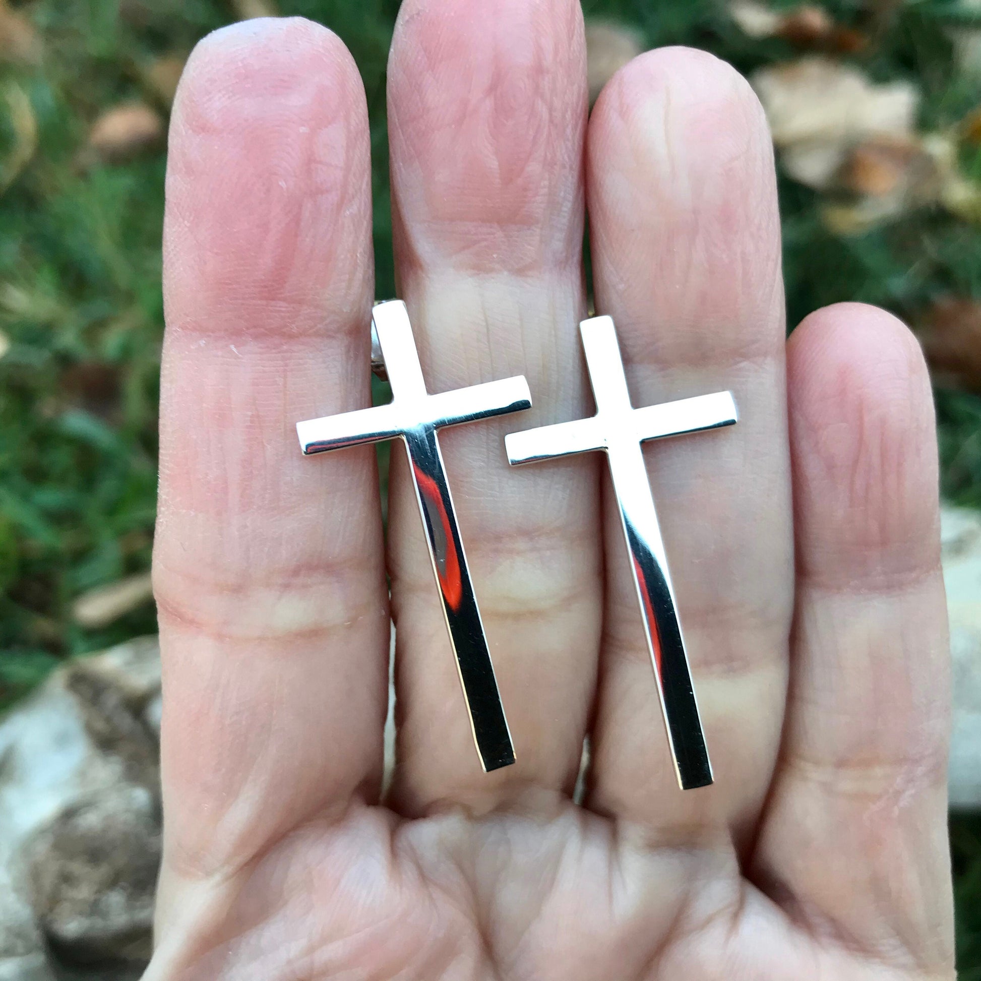 Sterling Silver large stud Cross earrings