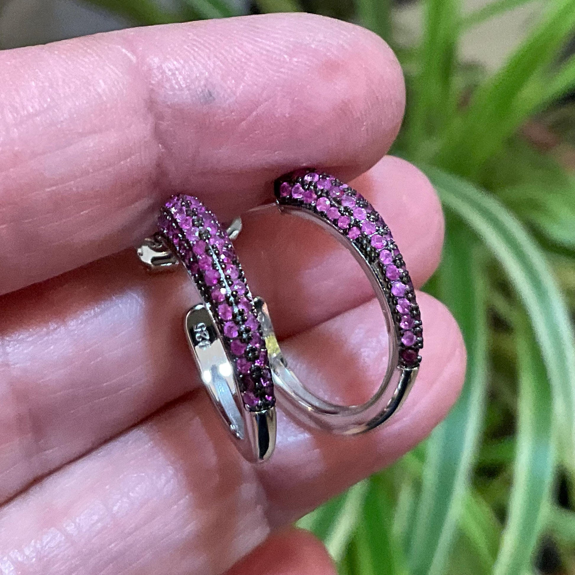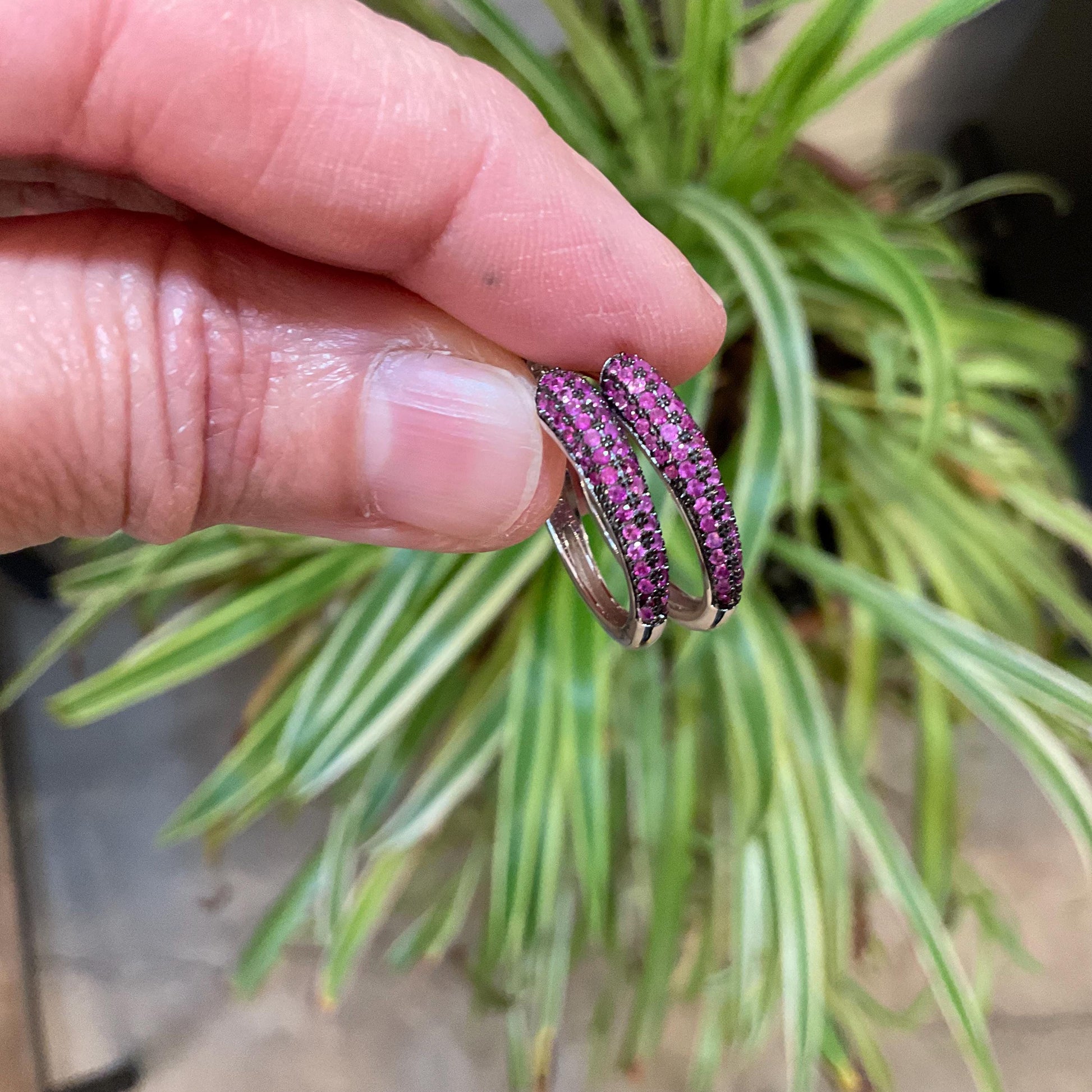 Sterling Silver Myanmar diamond cut red ruby small hoops Earrings