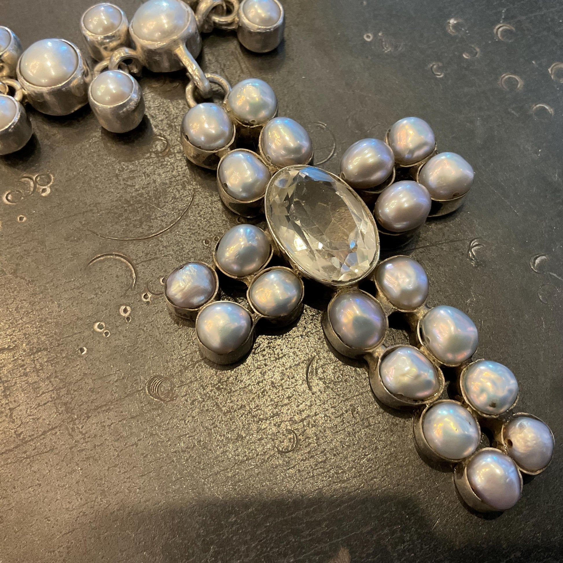 Sterling silver natural pearl cross natural quartz collar choker necklace