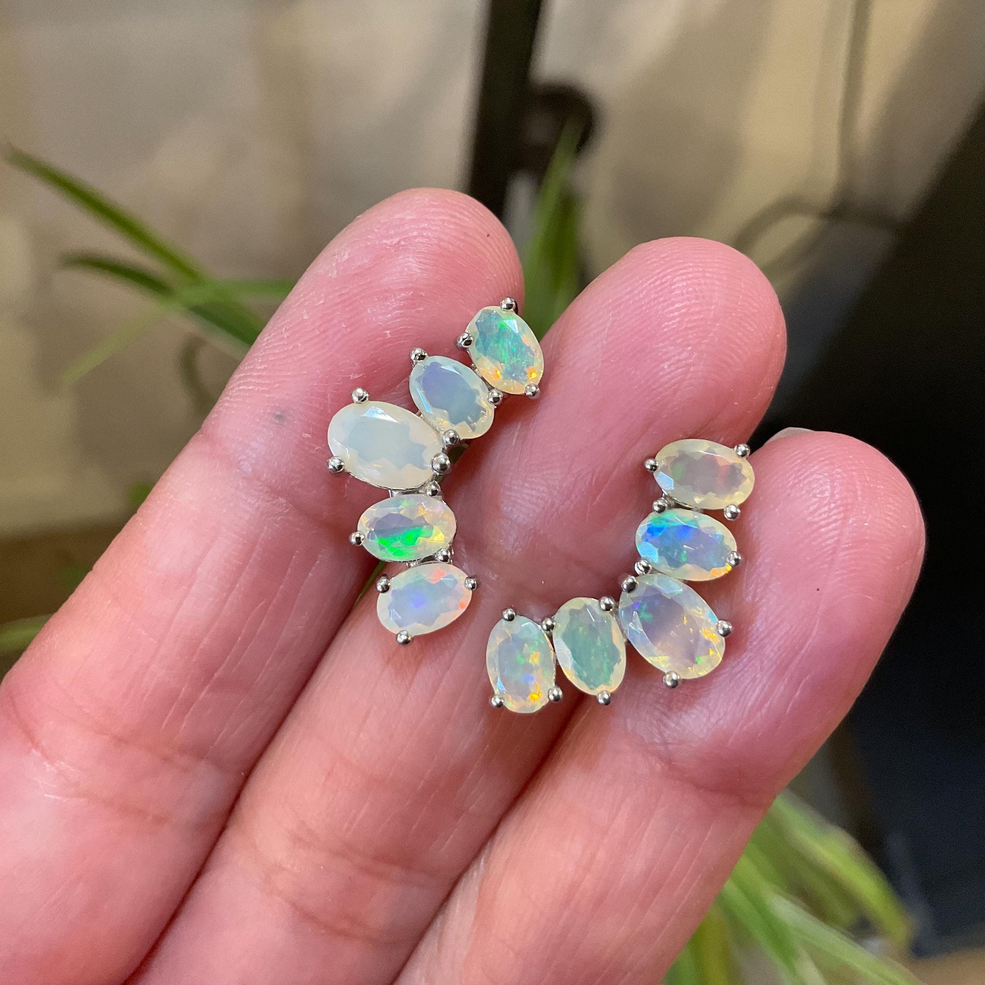Sterling Silver Natural rainbow Opal post casual Earrings