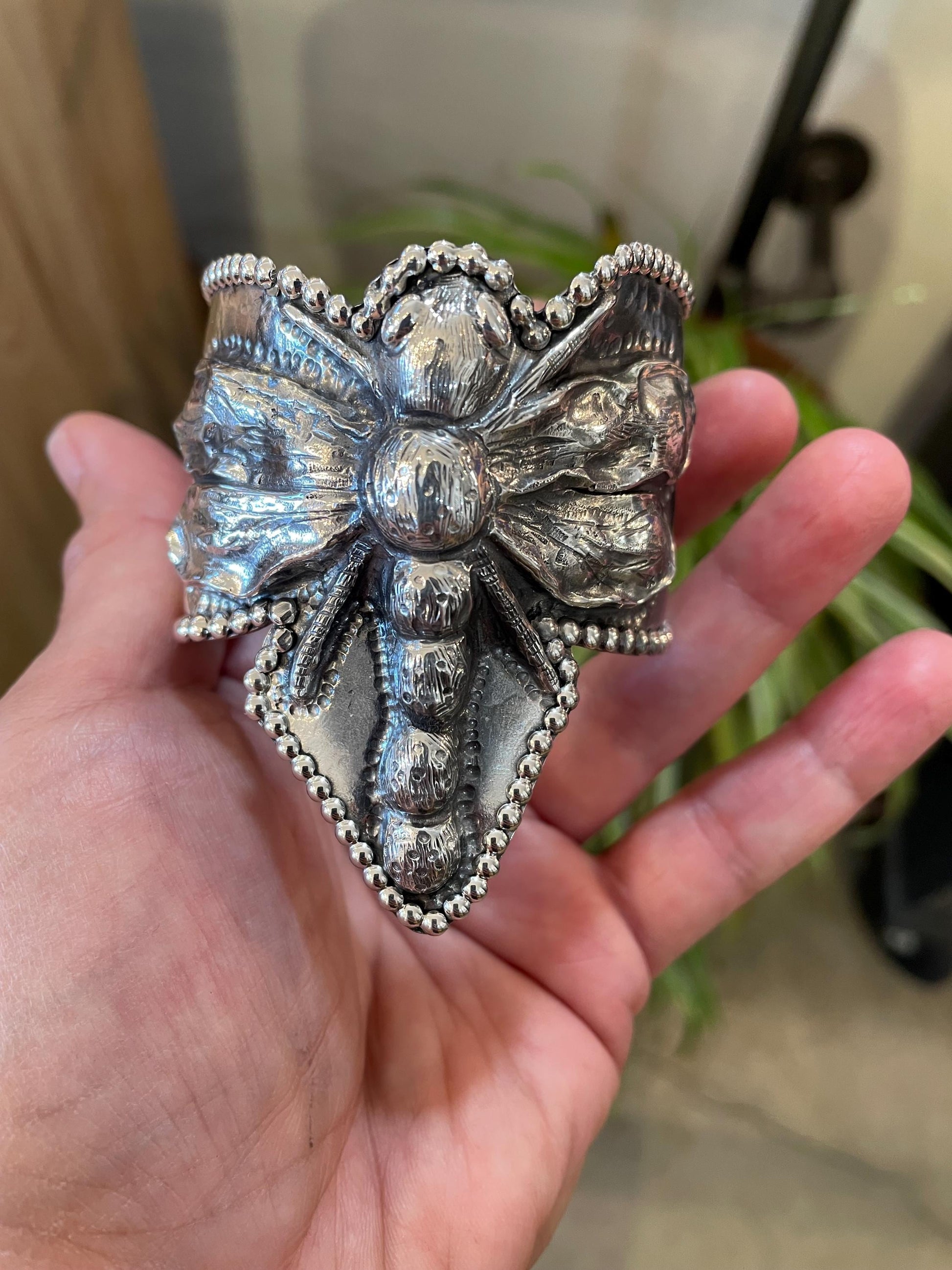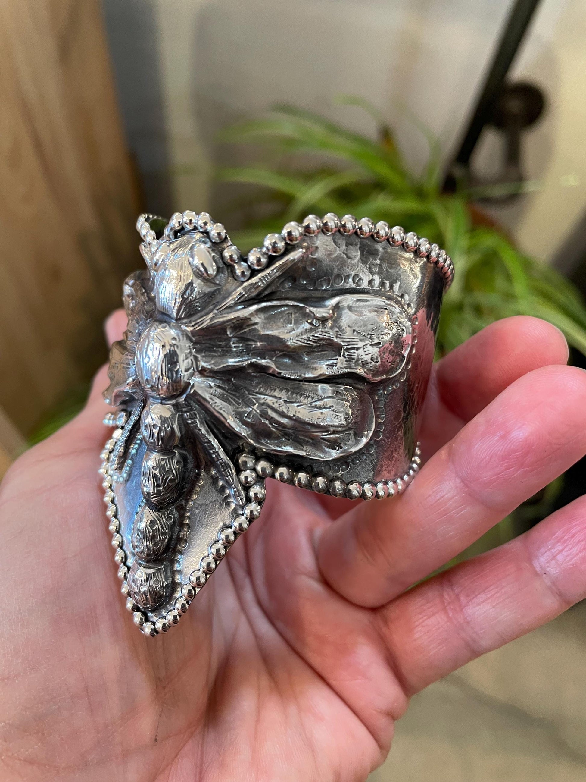 sterling silver repousse dragonfly bracelet artisan cuff