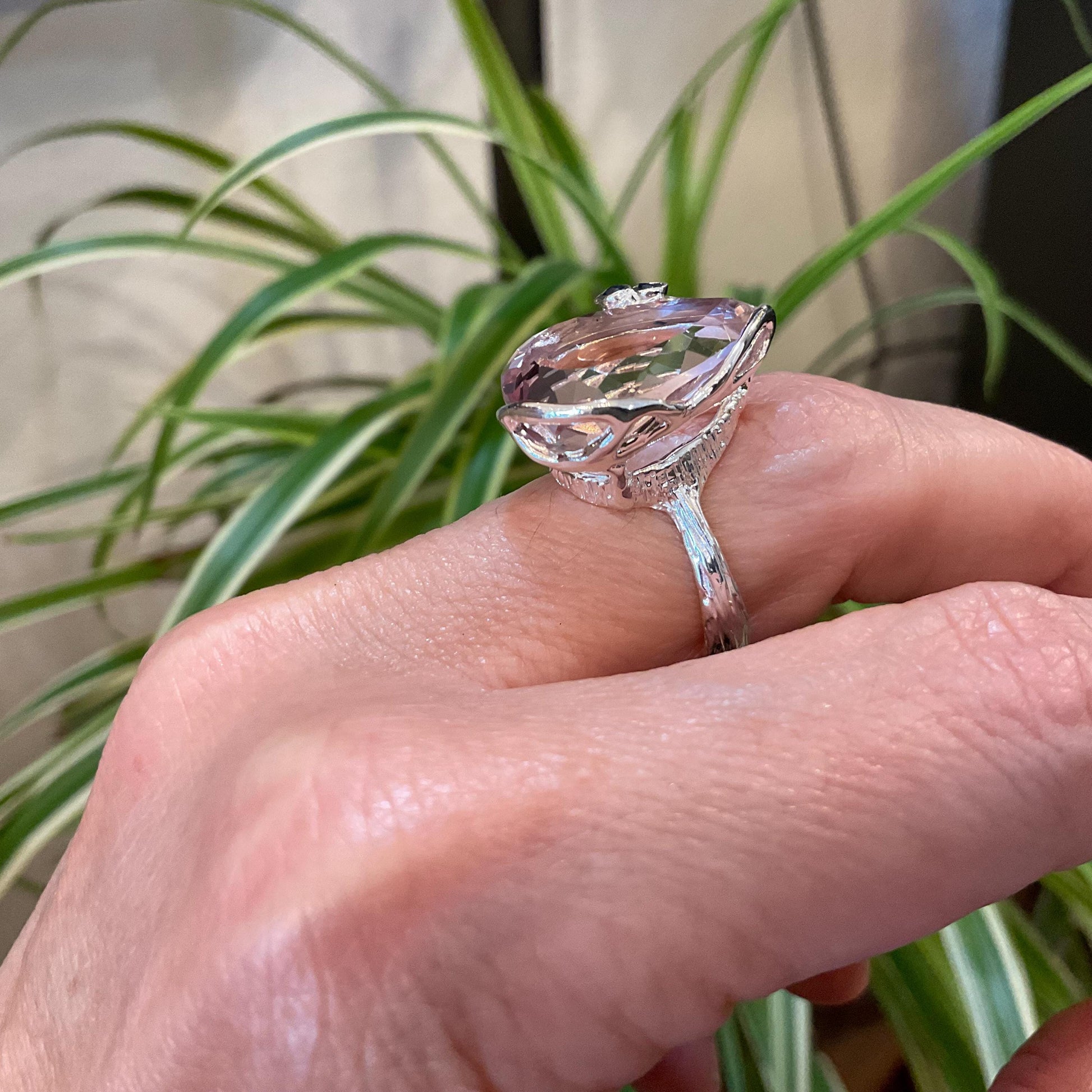 sterling silver statement Natural Ametrine blue sapphire pear shape ring 8