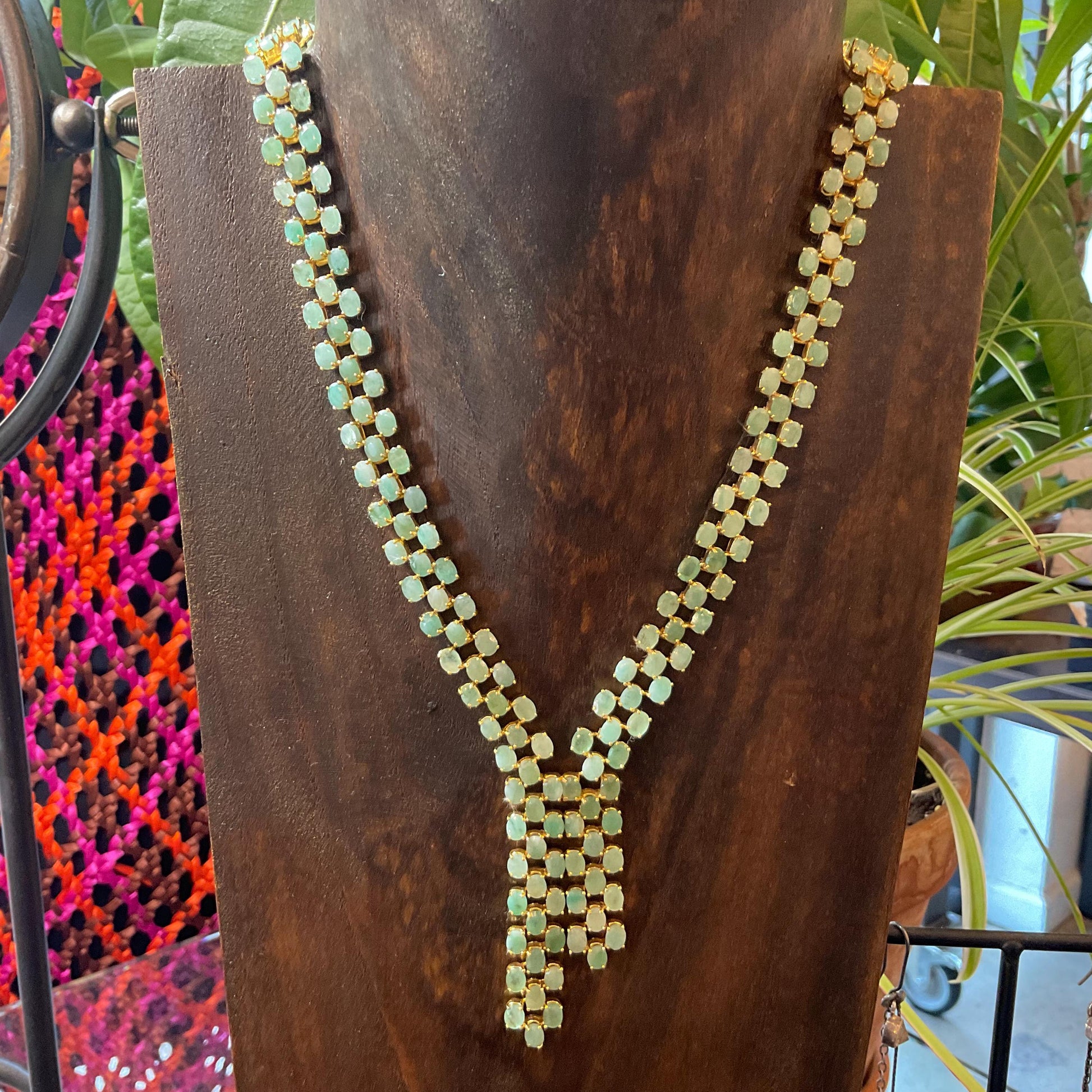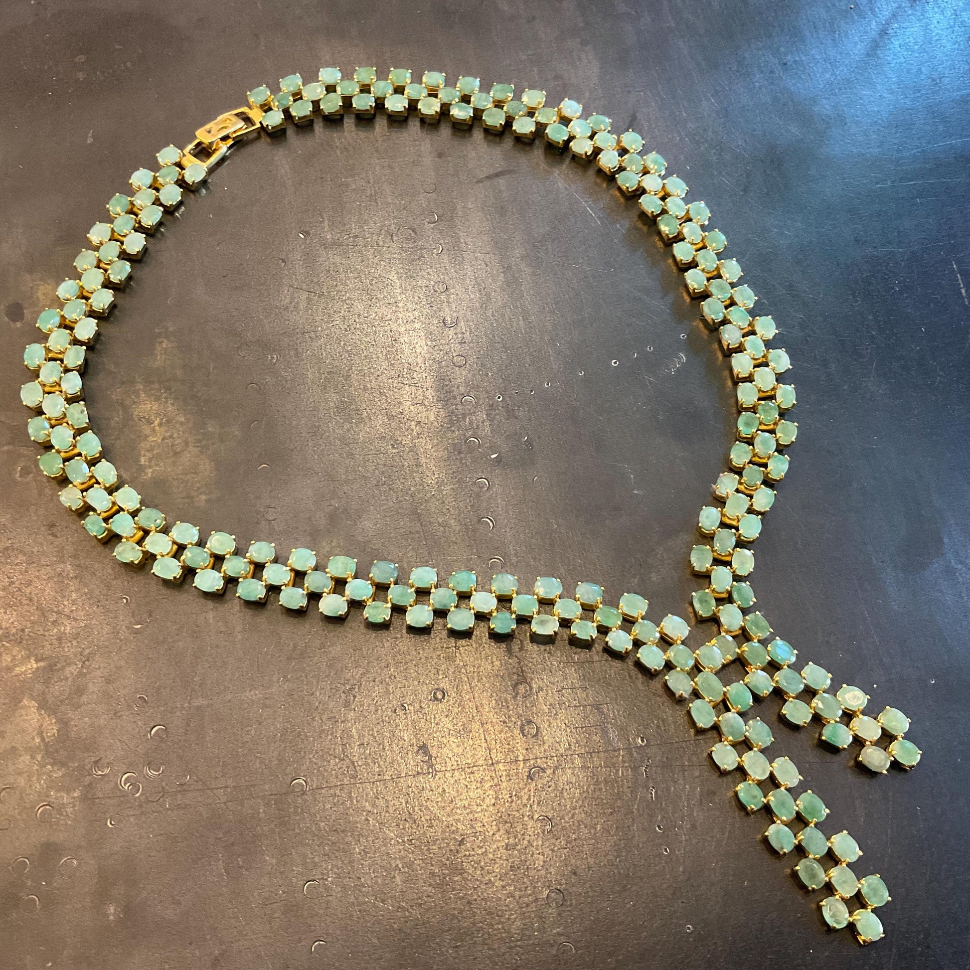 Sterling silver statement natural Emerald gold Necklace lariat