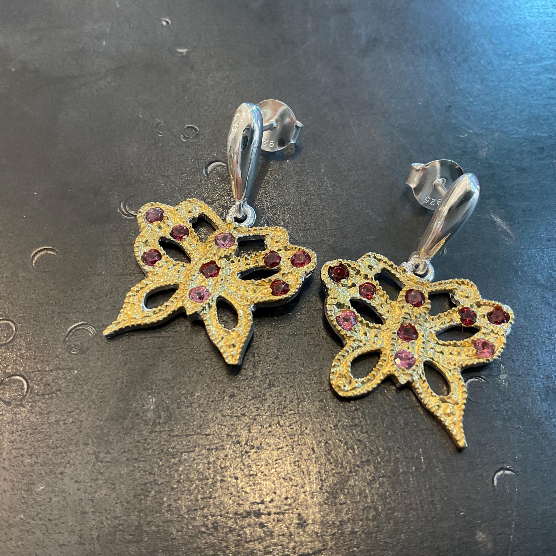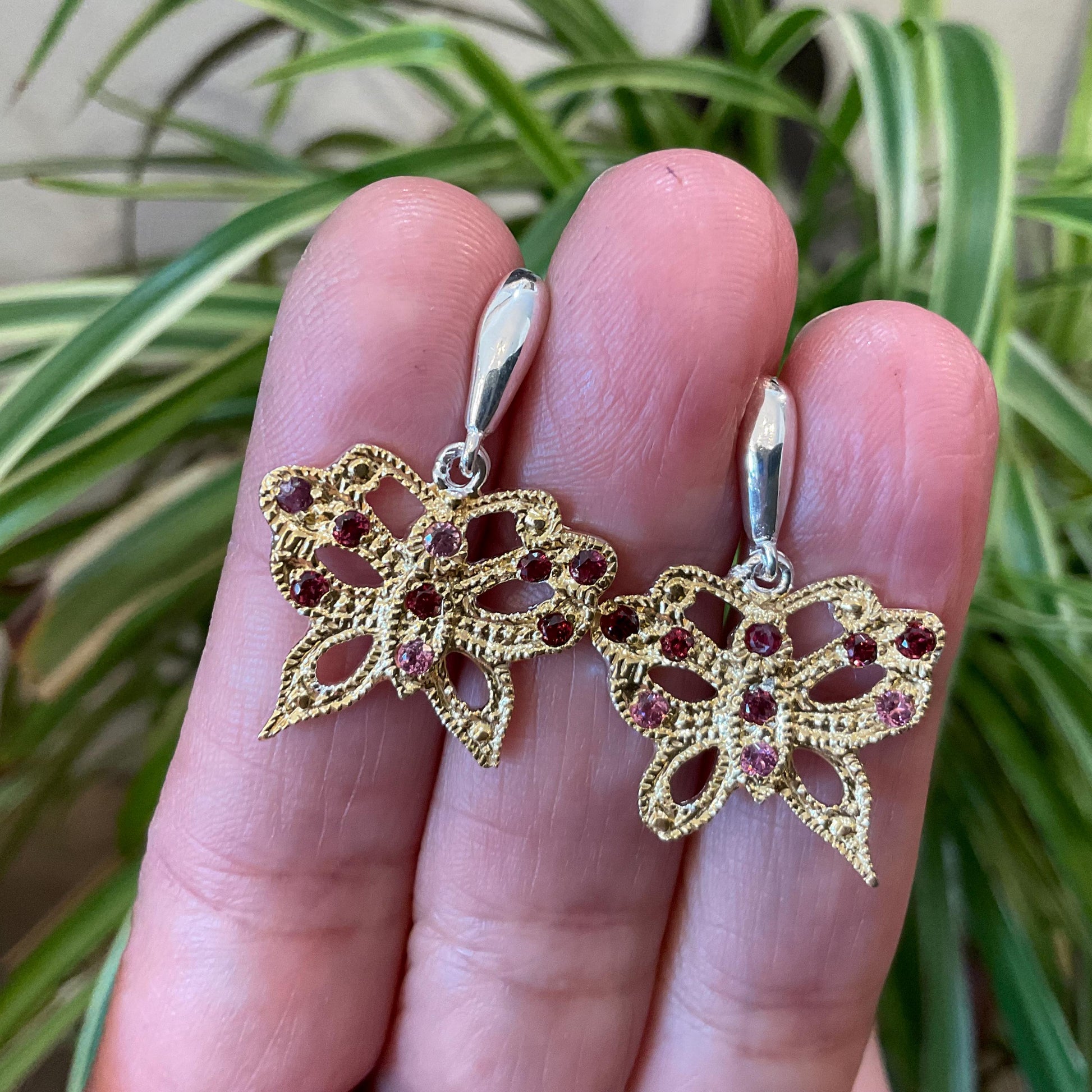 sterling silver statement rhodolite pink red butterfly stud dangle earrings