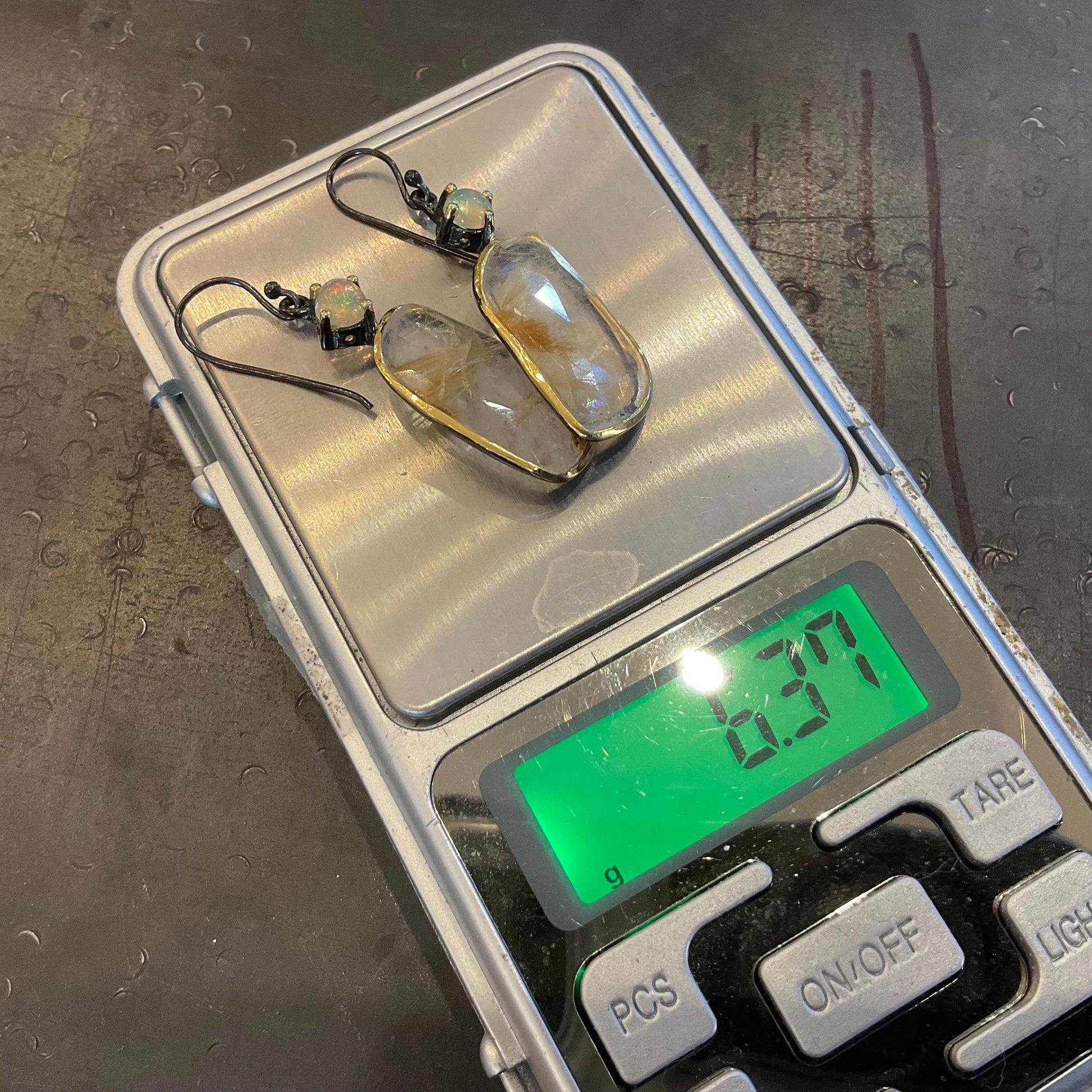 sterling silver statement rutilated quartz golden ribbon opal dangle earrings