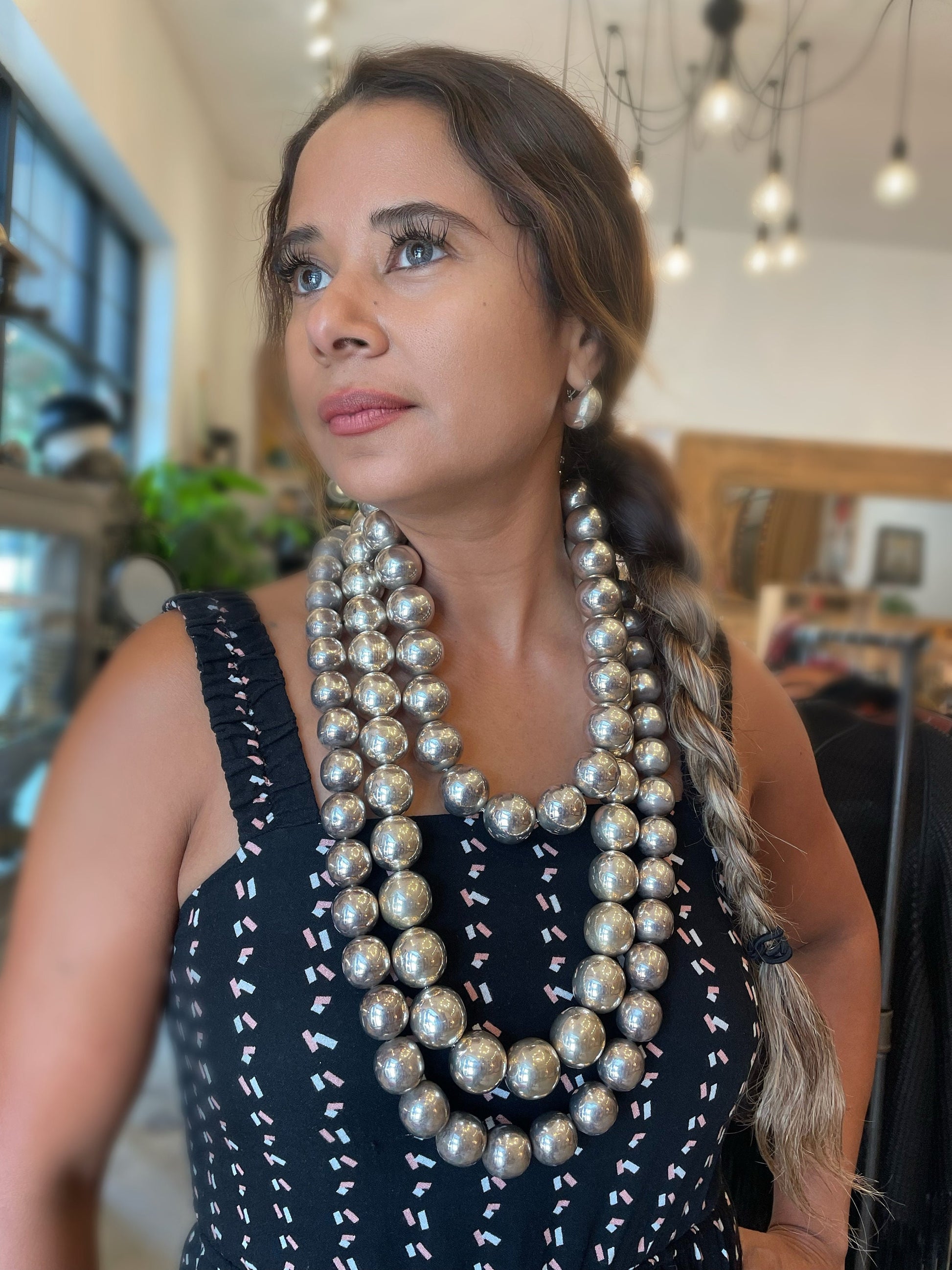 Sterling silver vintage 22mm huge bench bead necklace 35”
