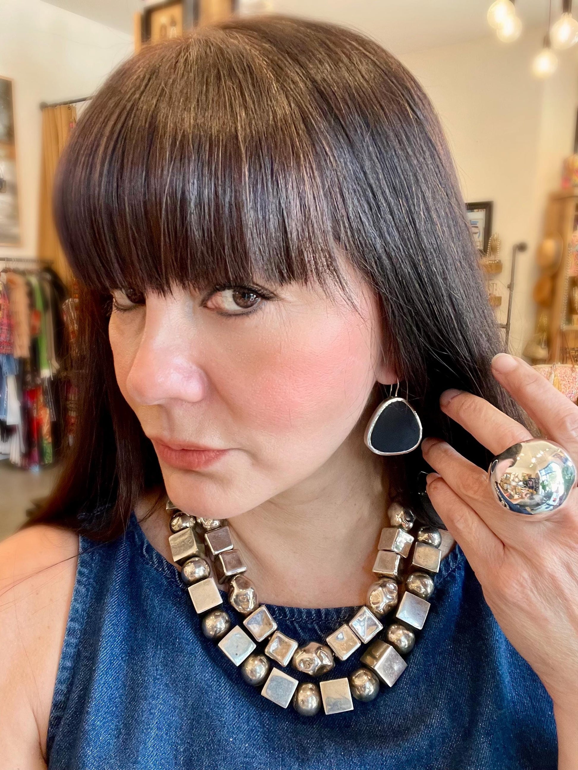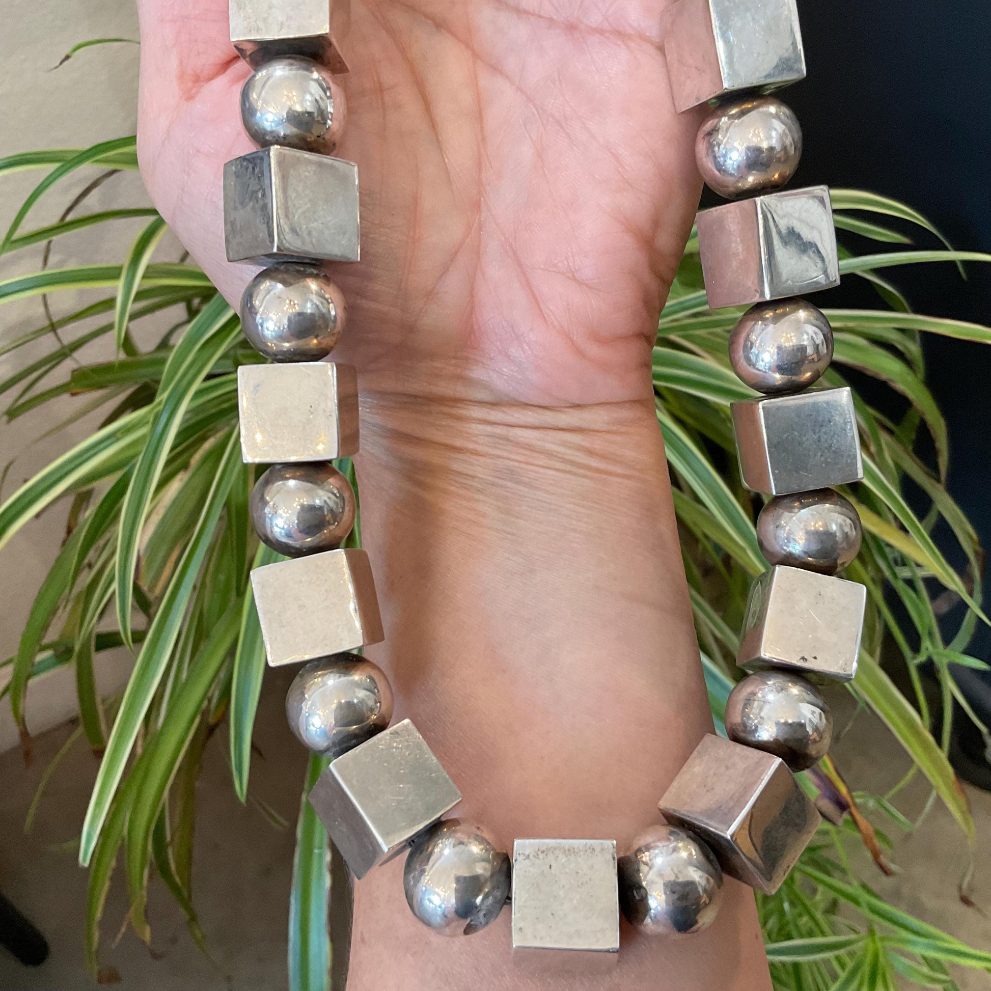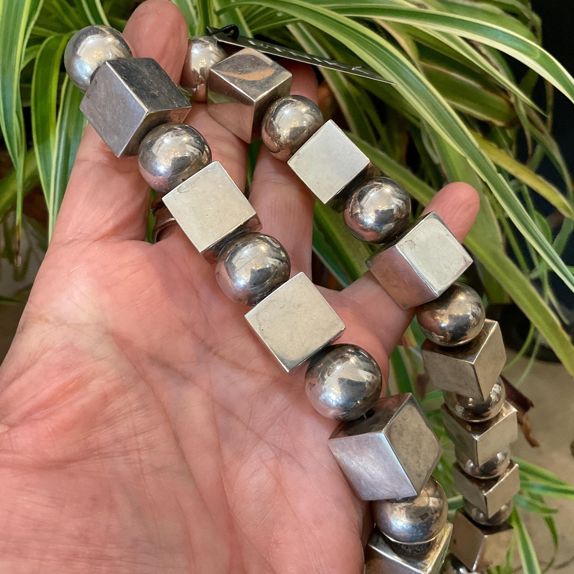 Sterling silver vintage pearl bench bead square statement necklace 20” long