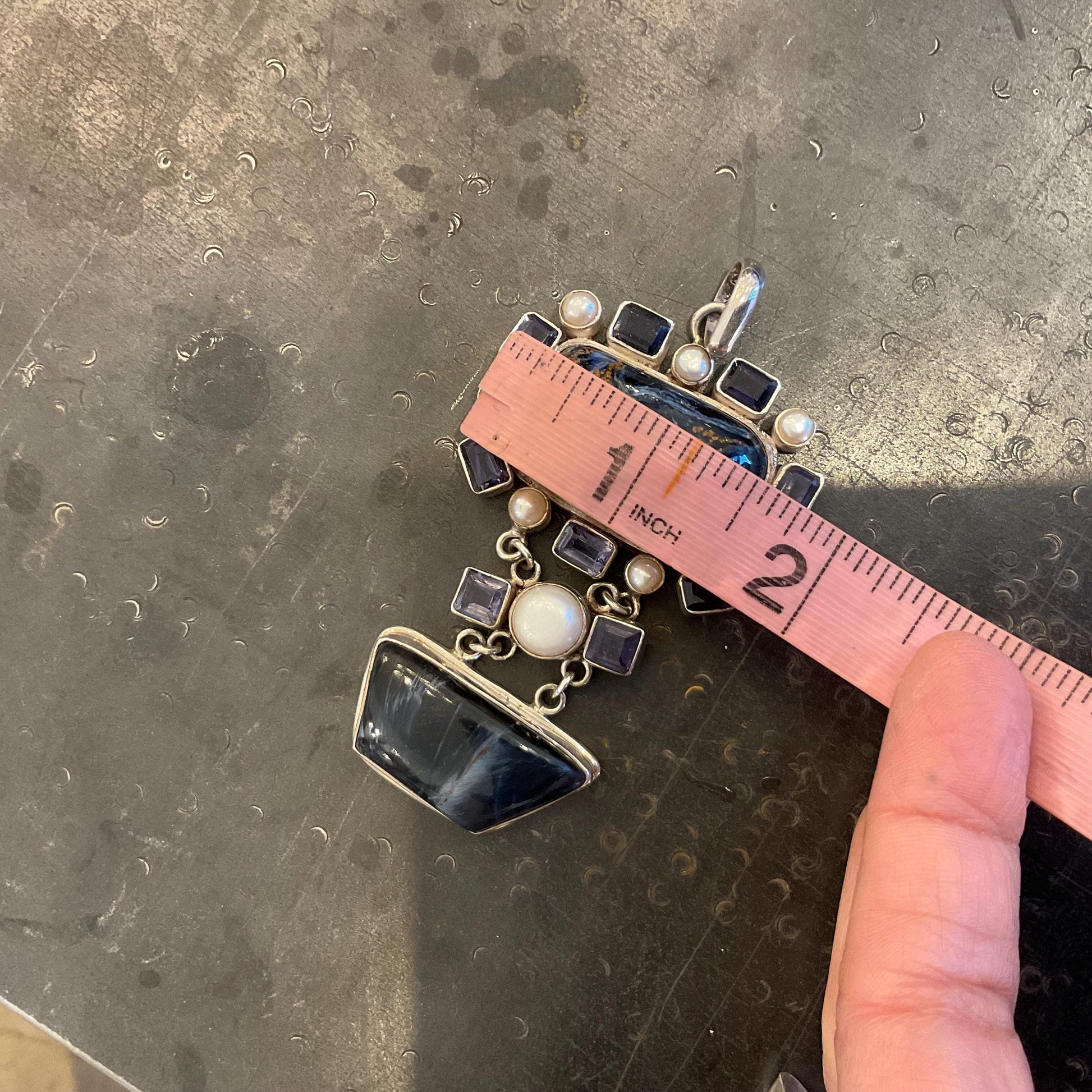 Sterling silver vintage Pietersite pearls pendant for necklace