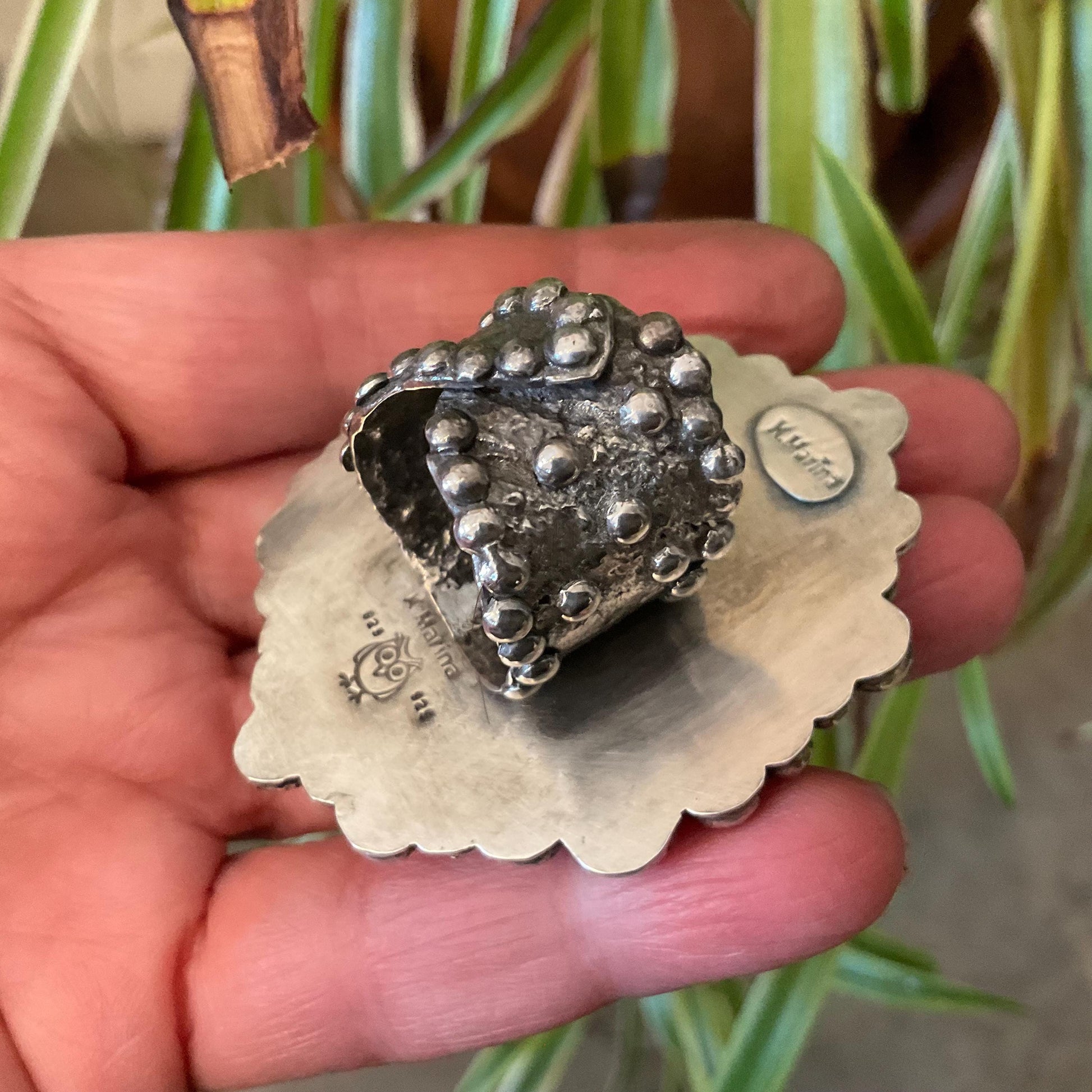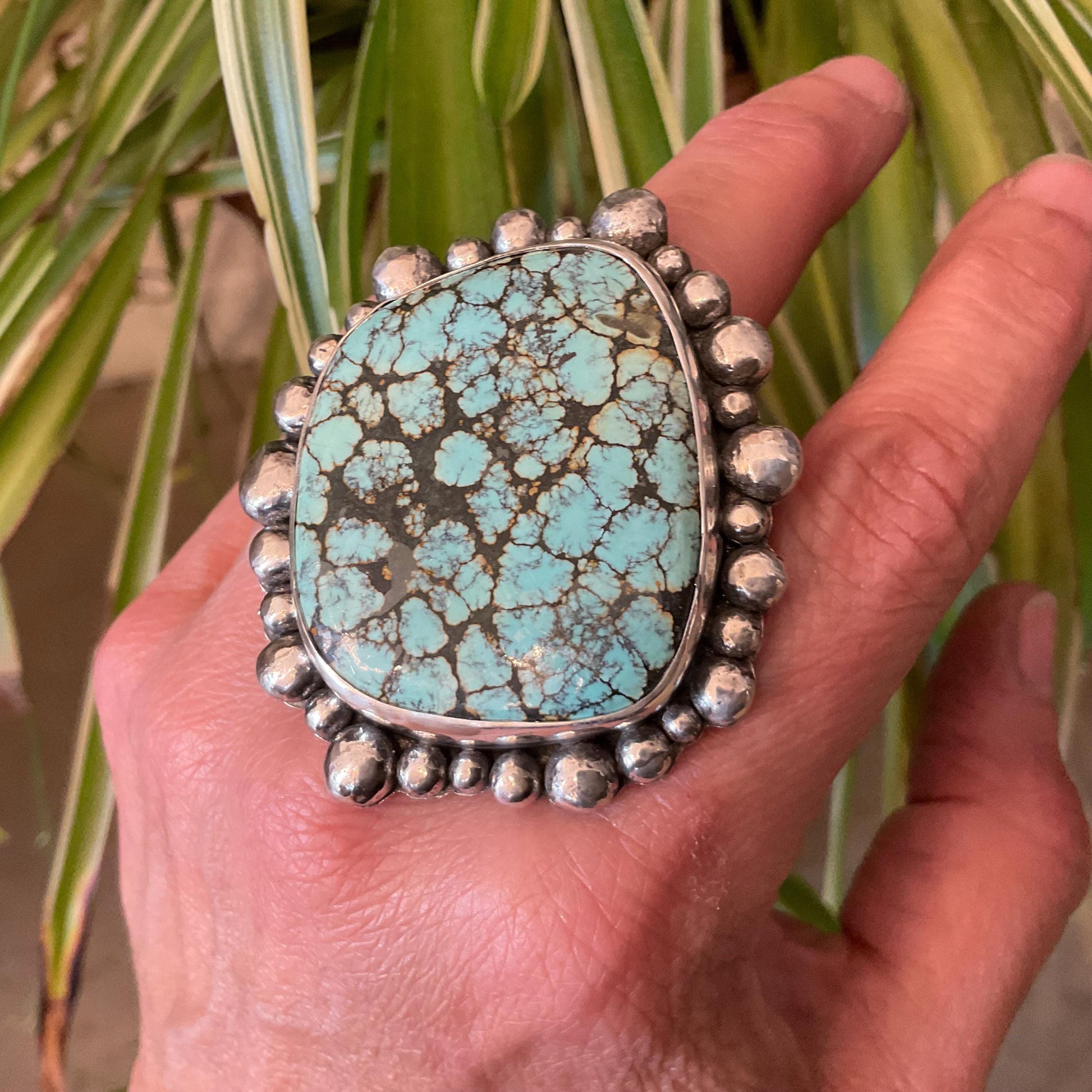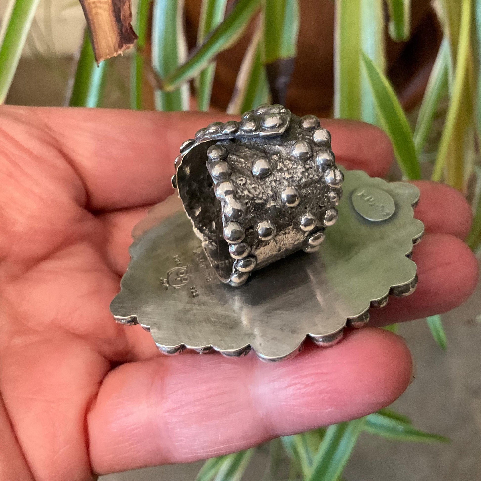 Sterling Statement spider web turquoise huge adjustable brutalist art cuff ring