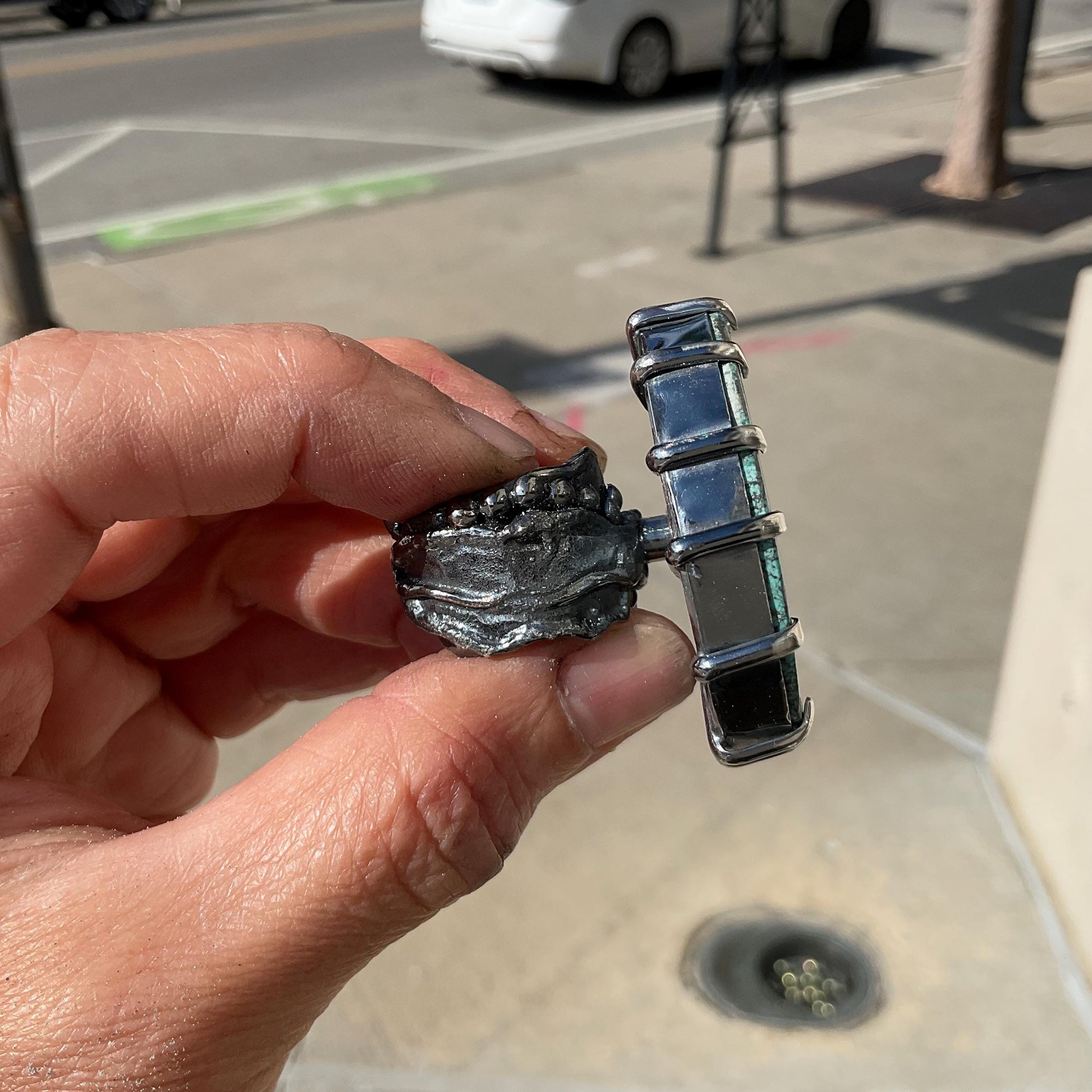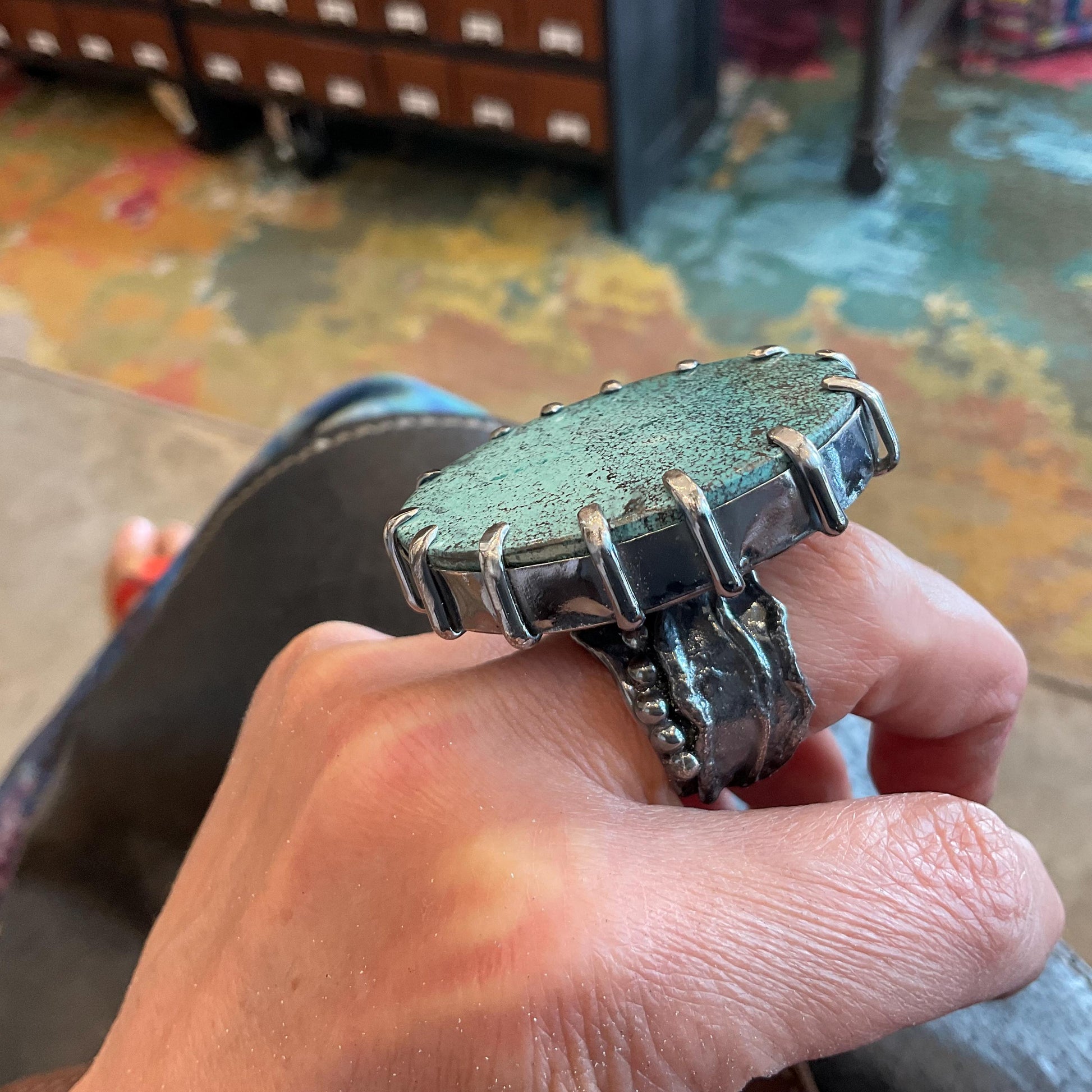 Sterling Statement turquoise huge adjustable brutalist art cuff ring